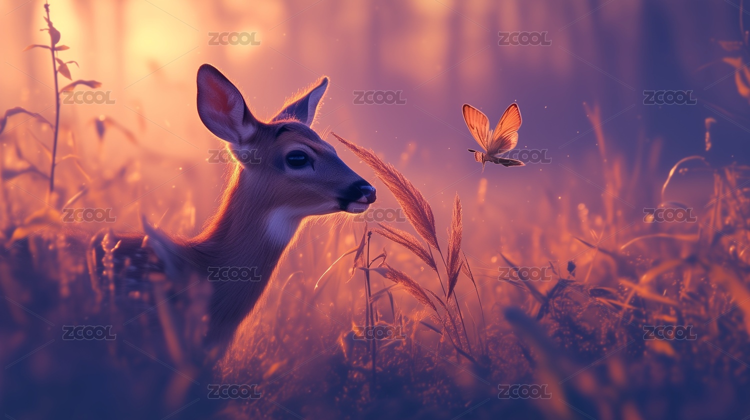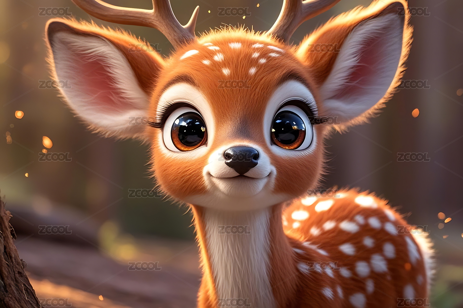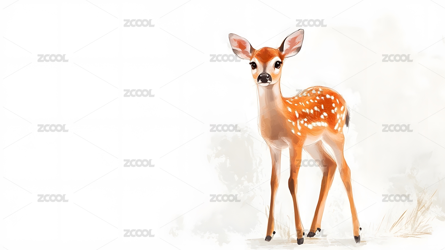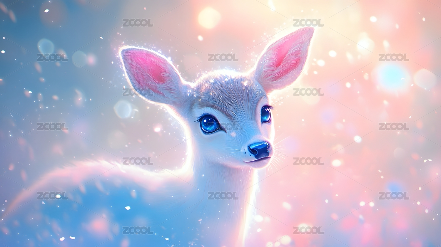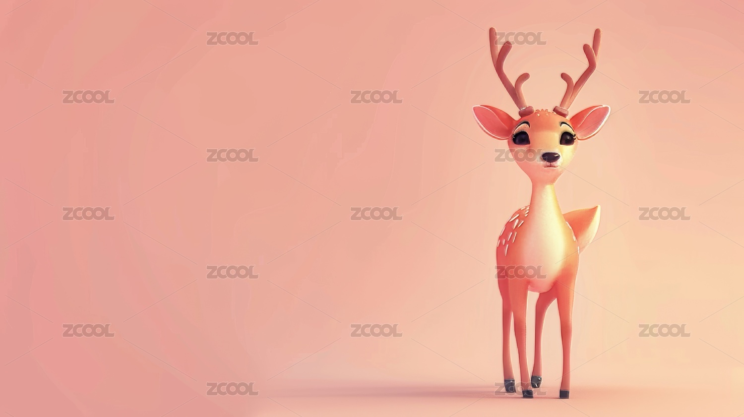 梅花鹿可爱唯美野生动物3D卡通插画壁纸