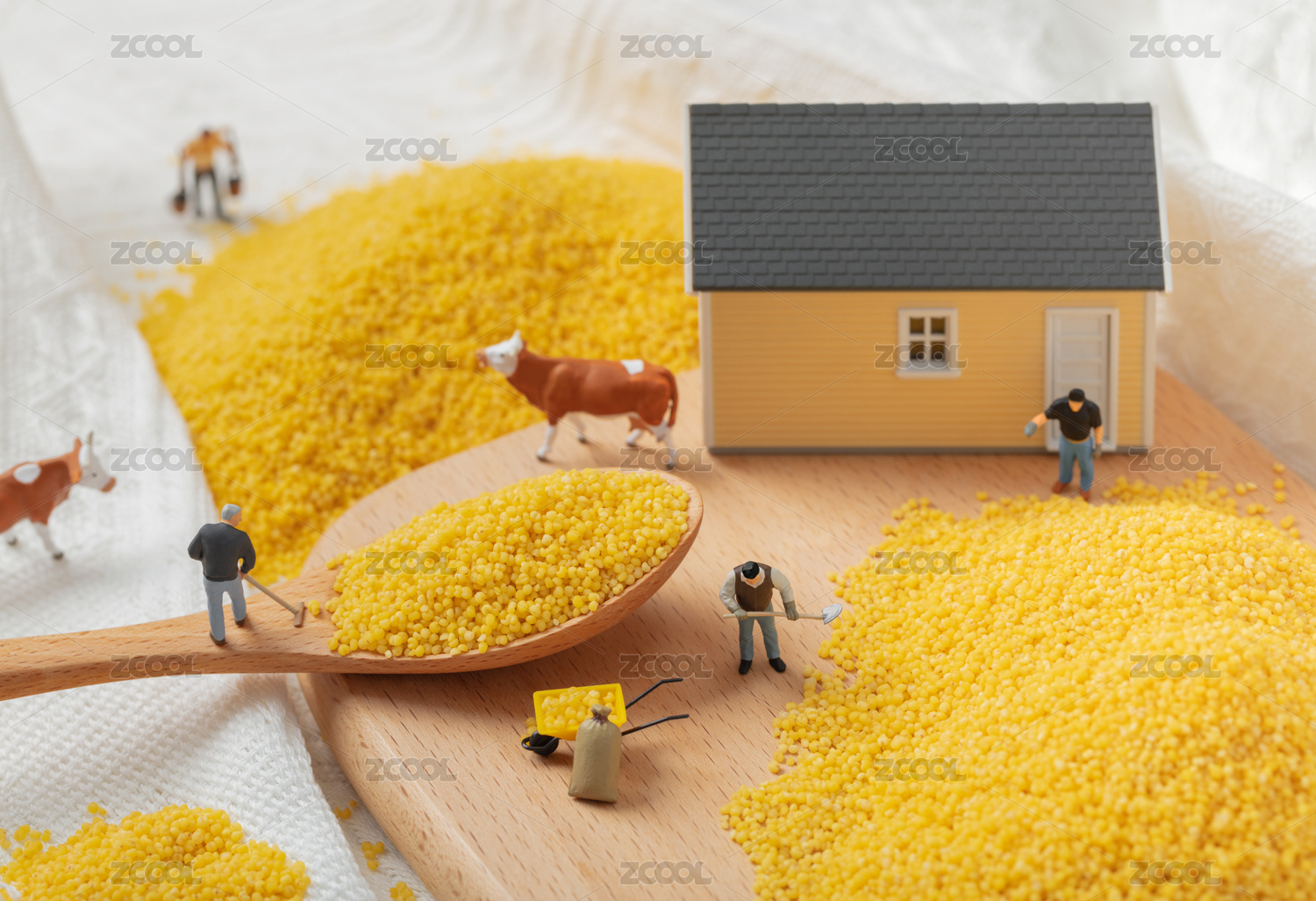 小米背景上劳作的农民人偶