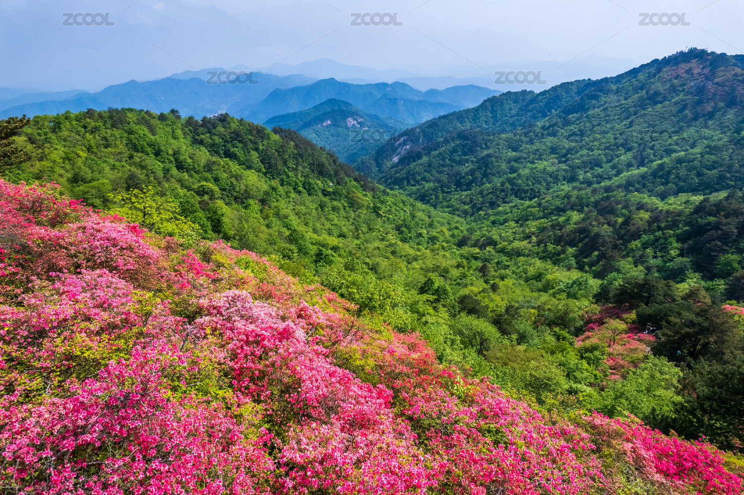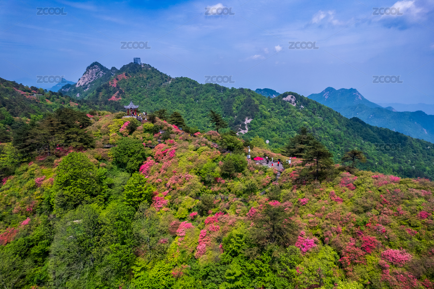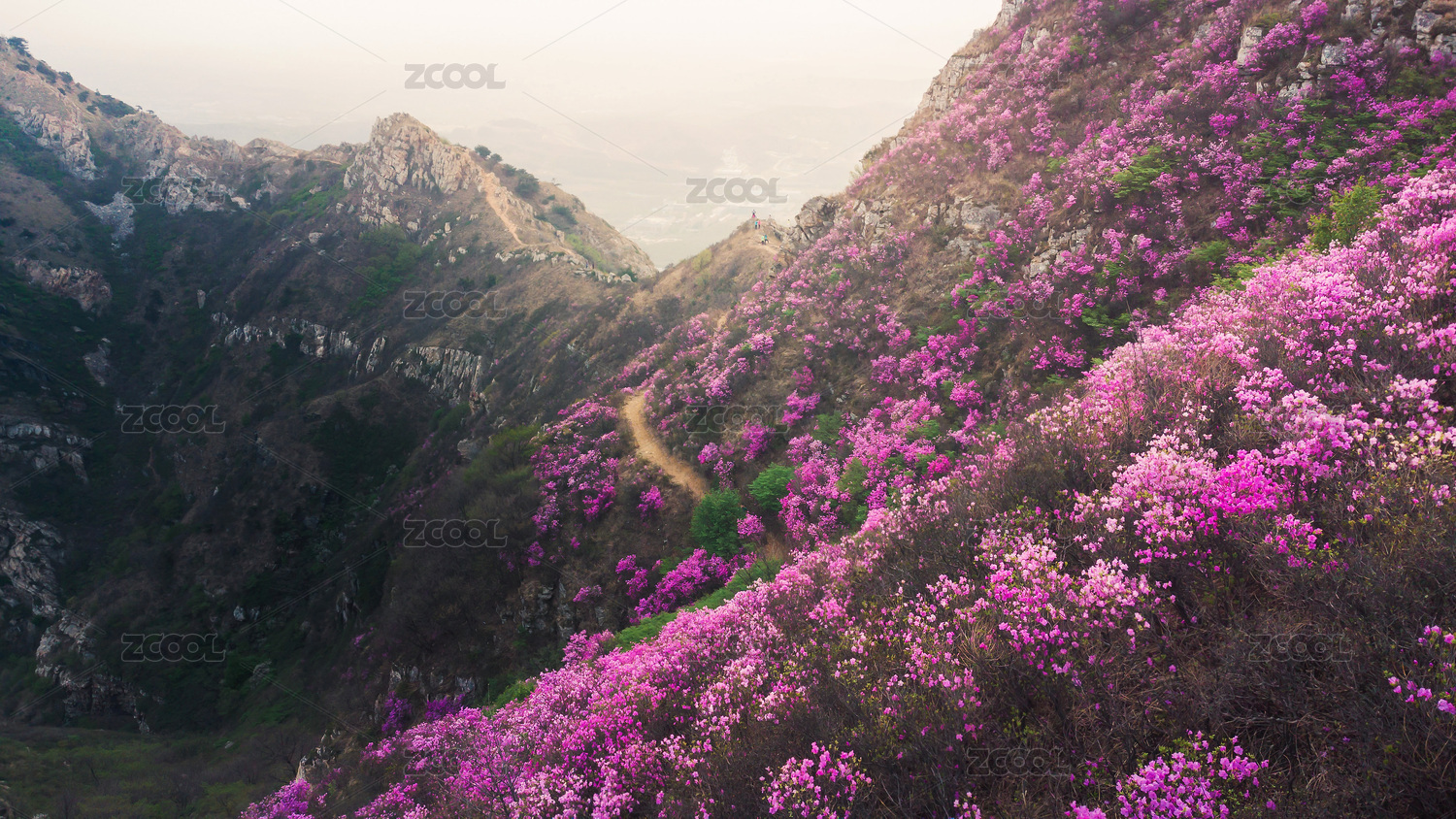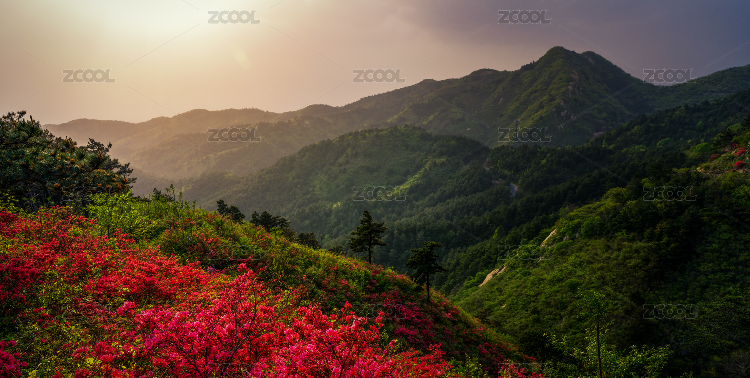 夕阳下武汉黄陂云雾山杜鹃花海风光