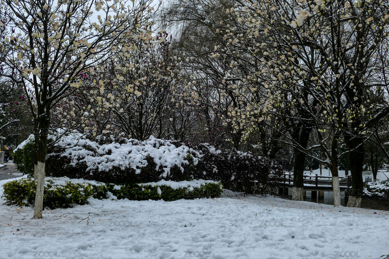 中国湖北武汉东湖磨山樱园雪景