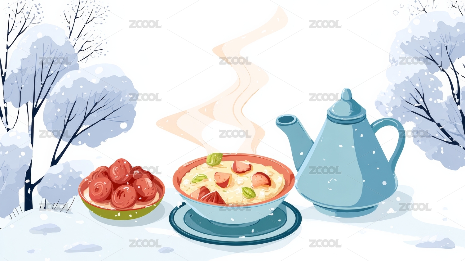 冬季雪景美食插画