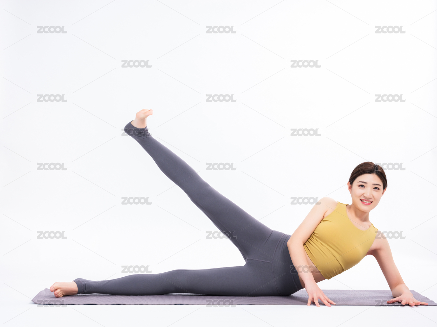 身穿运动服、做瑜伽动作的东方女性,