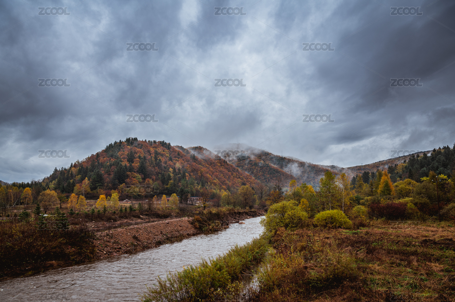 秋日山谷溪流景色