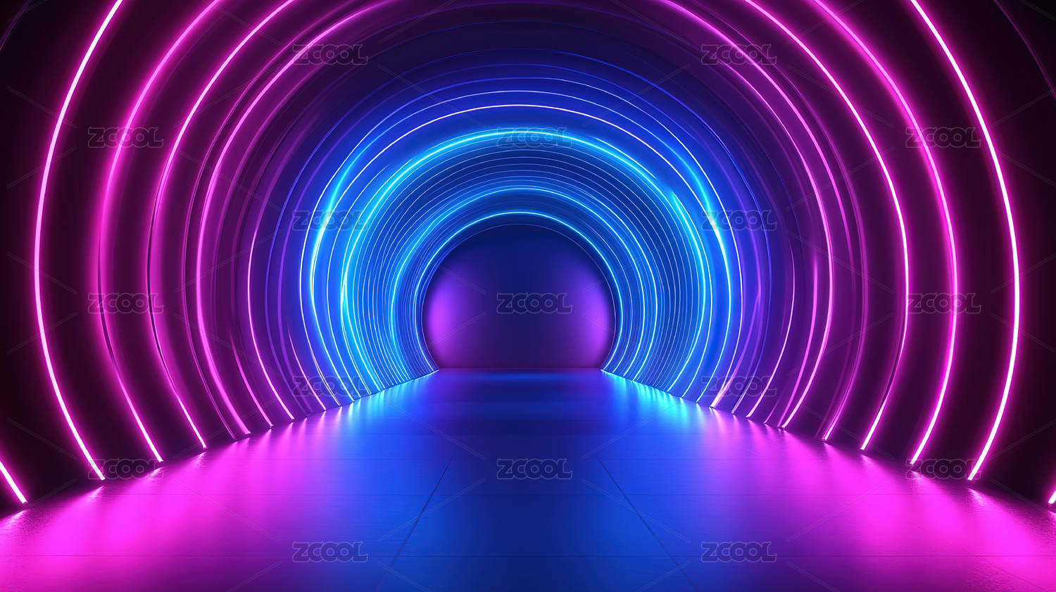 未来科技感的霓虹灯隧道
