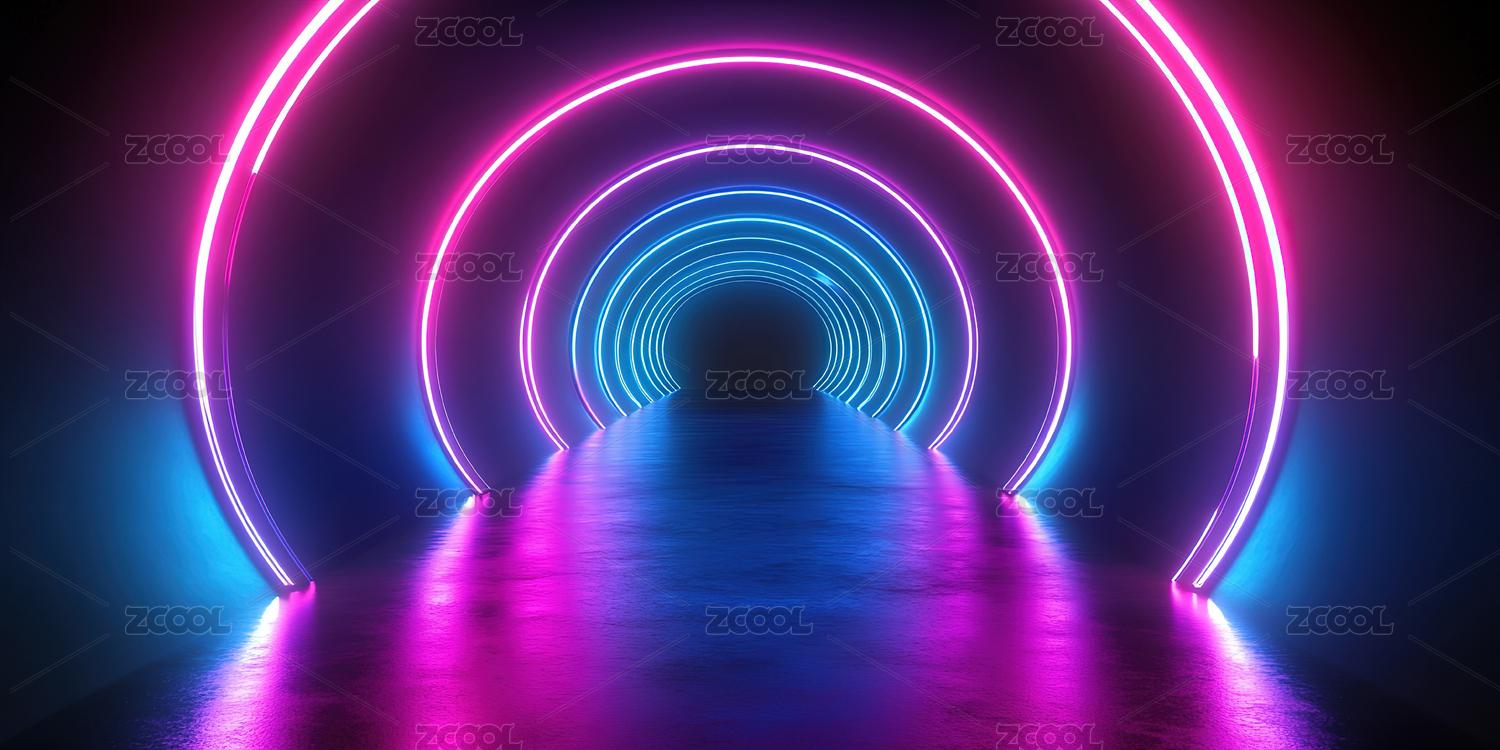 霓虹灯隧道空间背景3D渲染