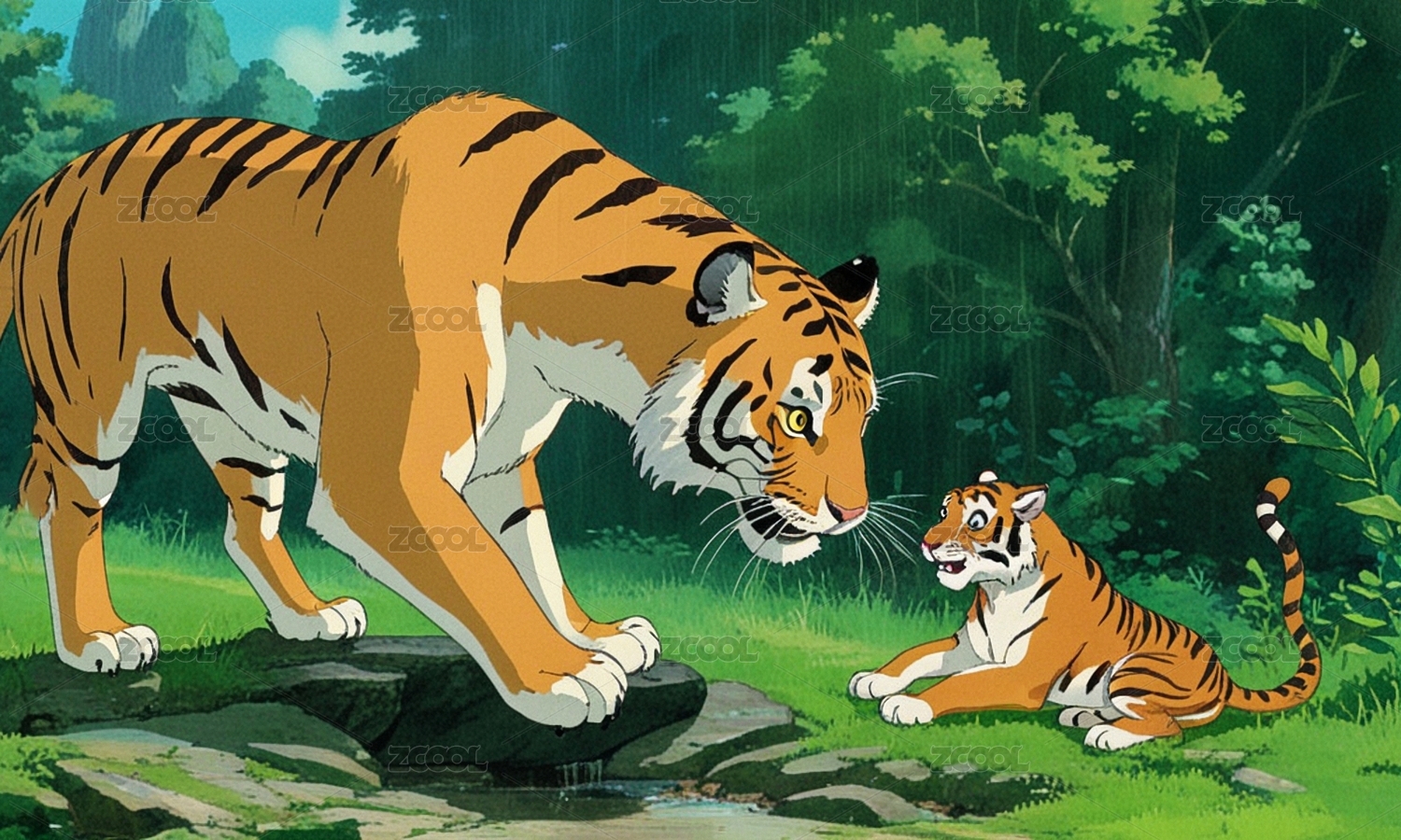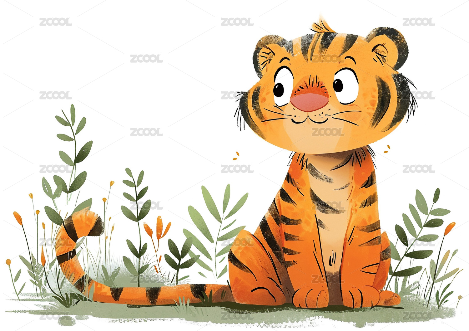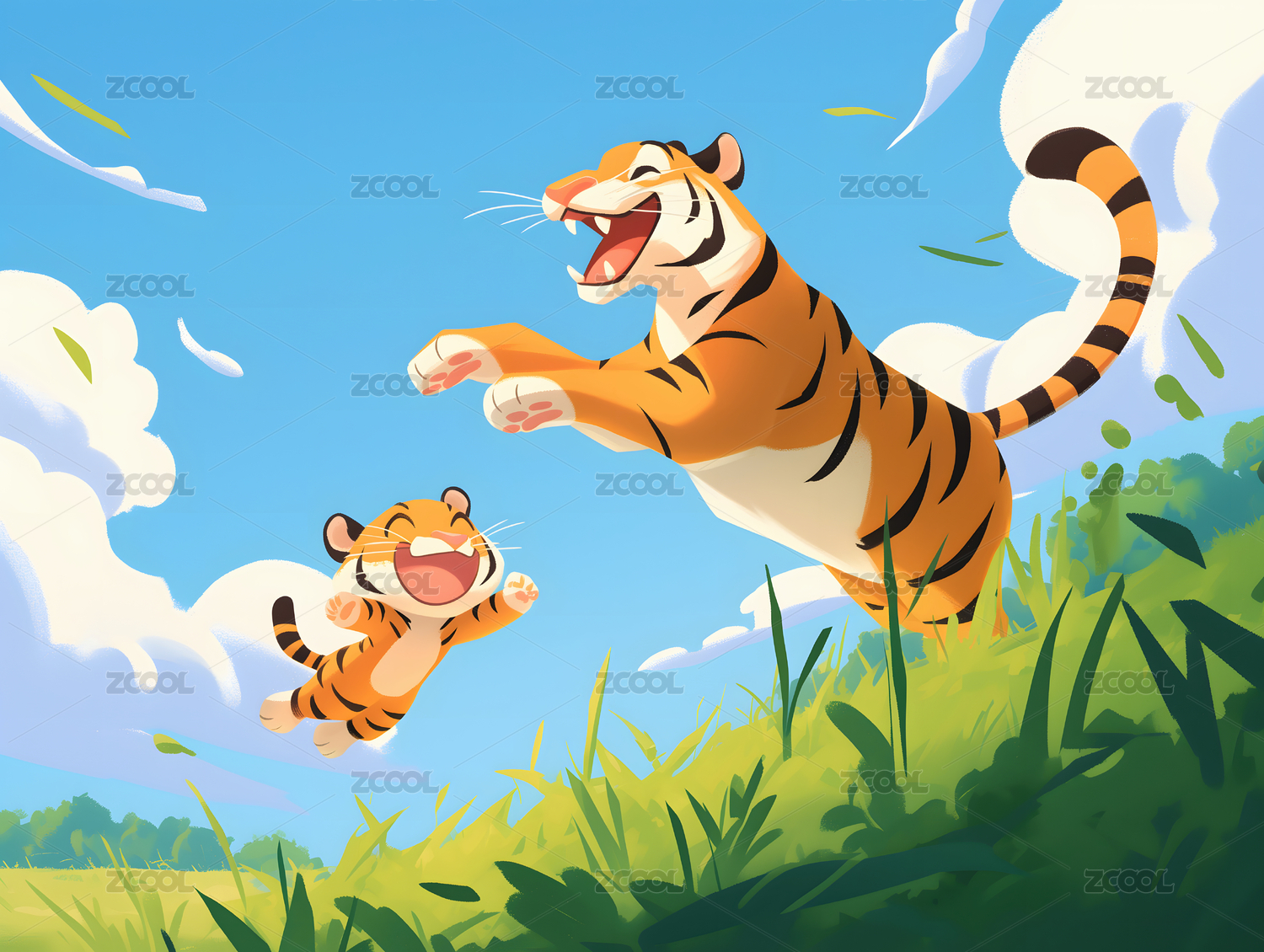 温馨,亲子,卡通,插画,自然,横构图,植物,花朵,动物,草地