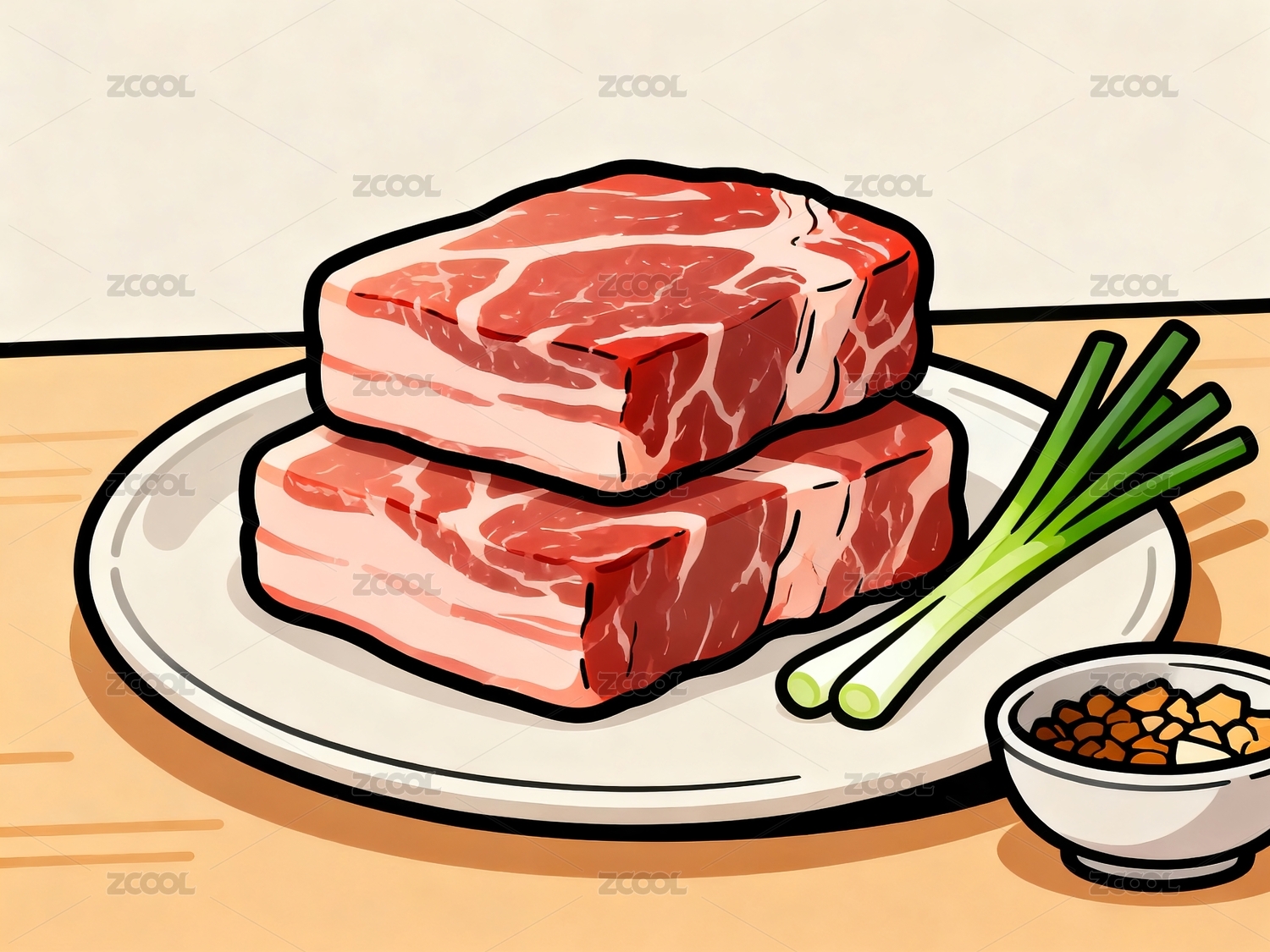 卡通插画 一块生猪肉
