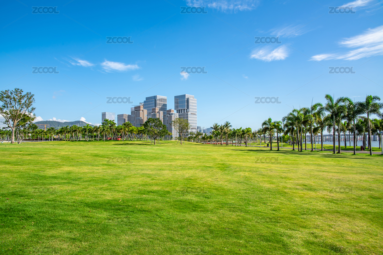 深圳草坪和城市建筑风光