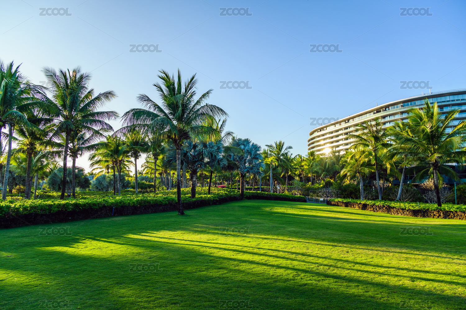 前海石公园草坪和城市建筑