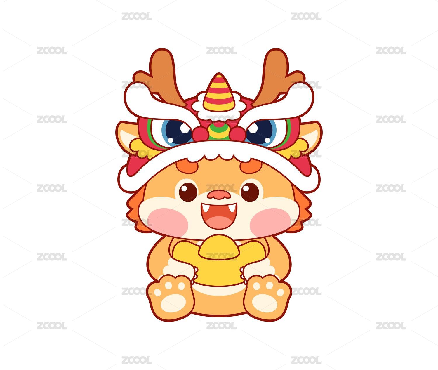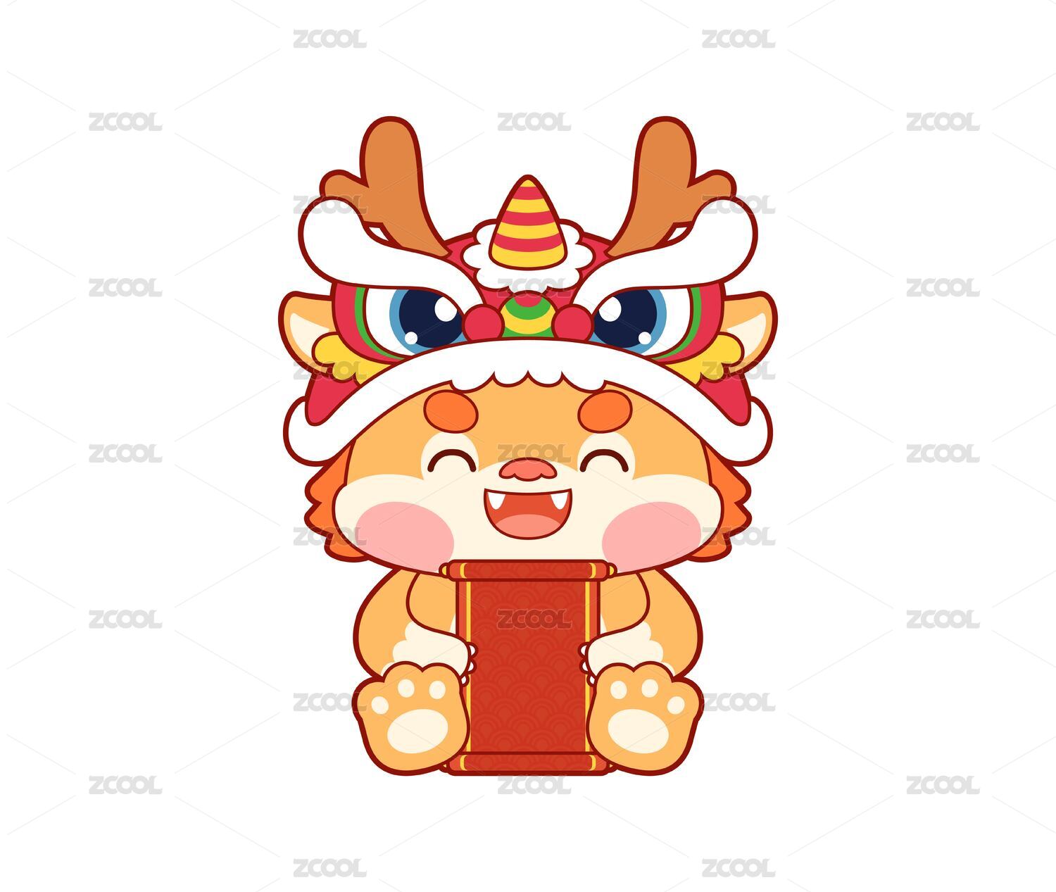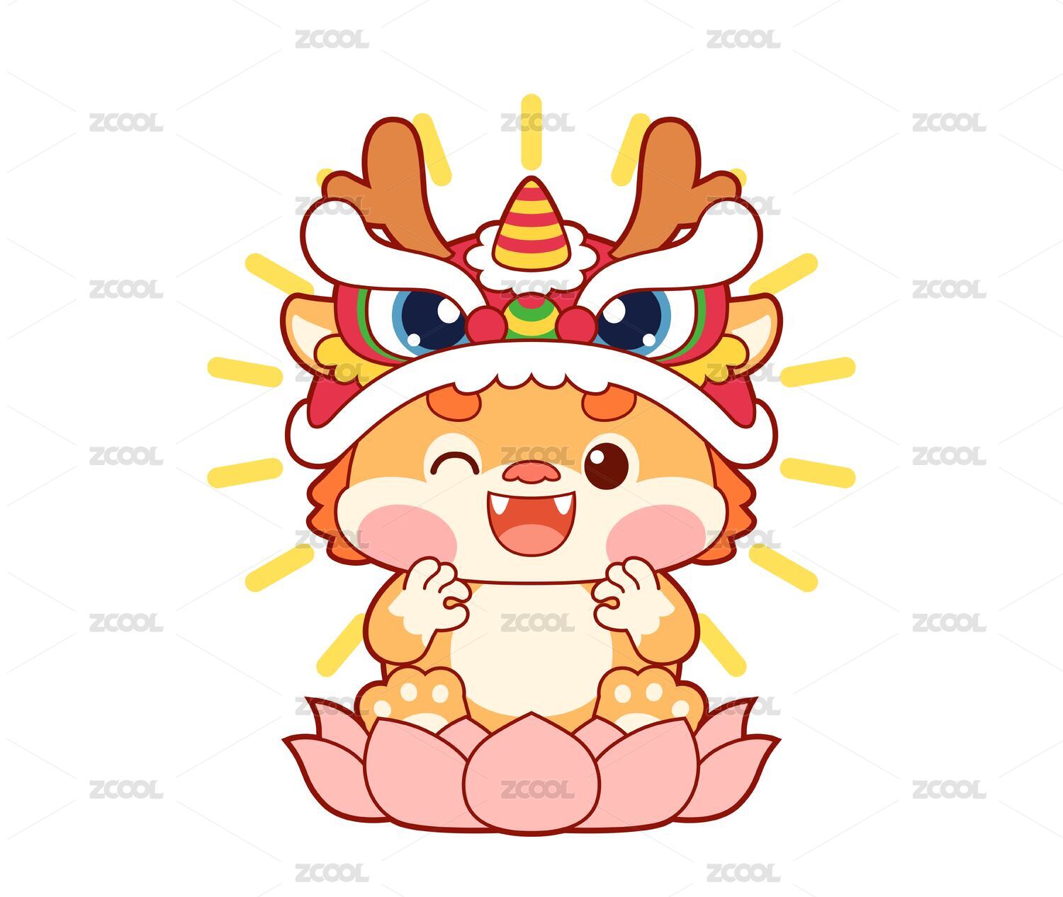 中国龙,龙年,醒狮,舞狮,龙,生肖,神兽,卡通,可爱,插画