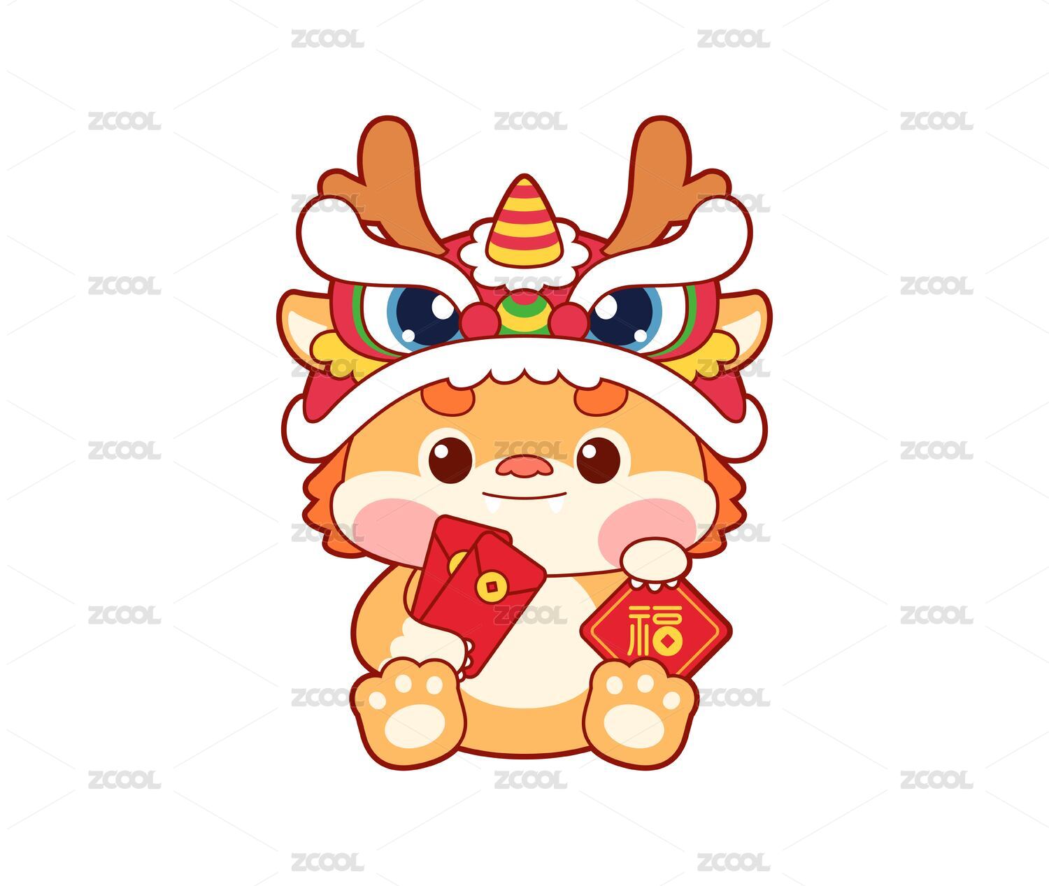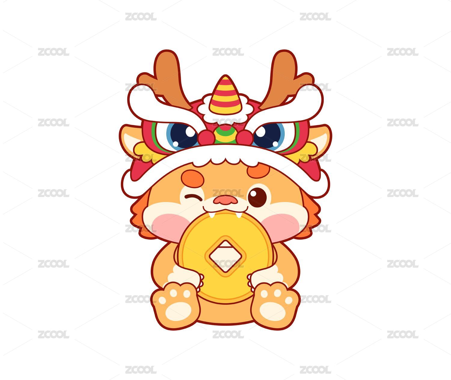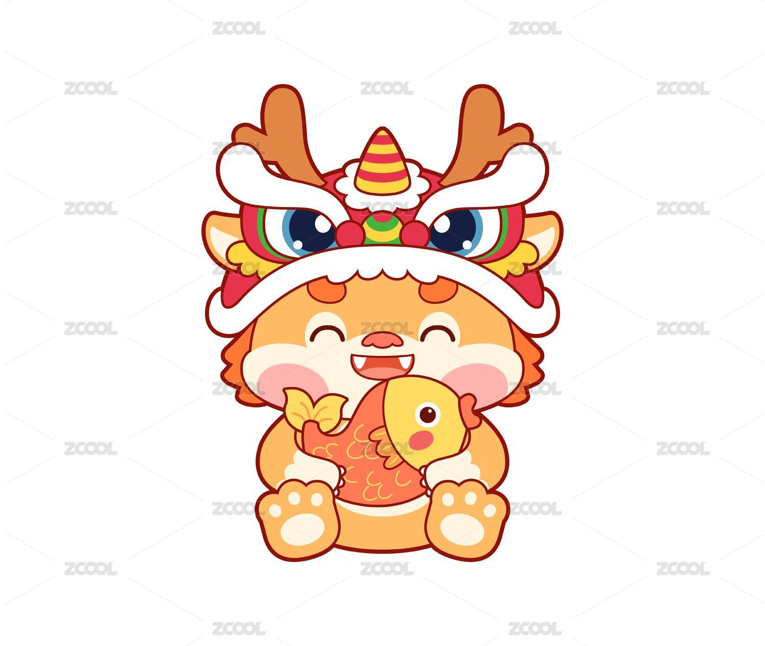 中国龙,龙年,醒狮,舞狮,龙,生肖,神兽,卡通,可爱,插画