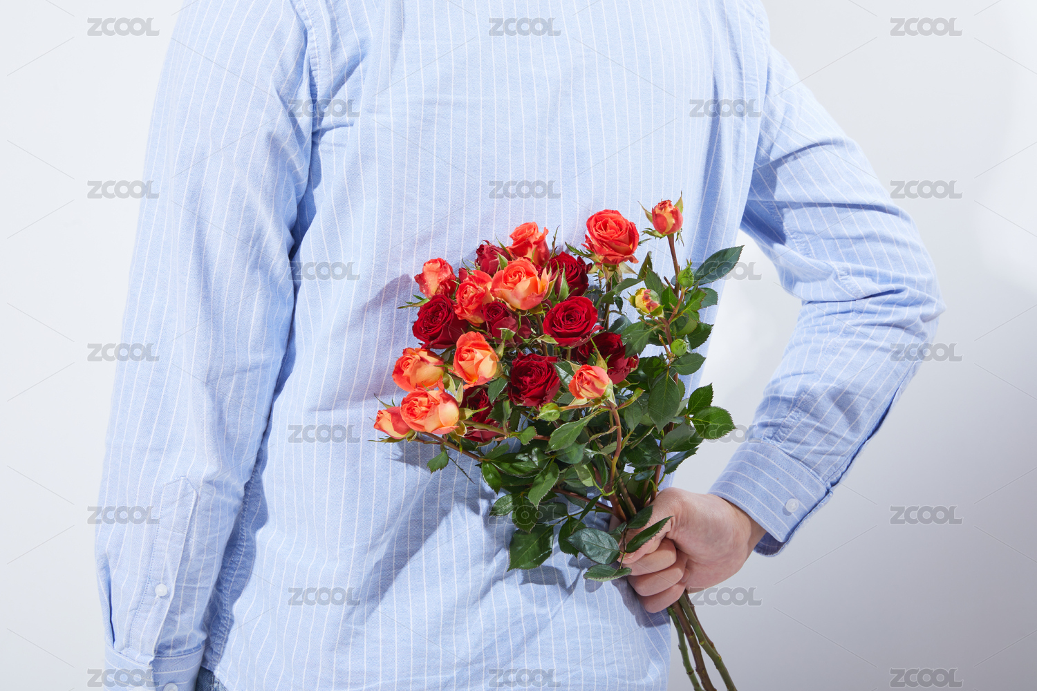 一束红色玫瑰花藏在背后的亚洲男士