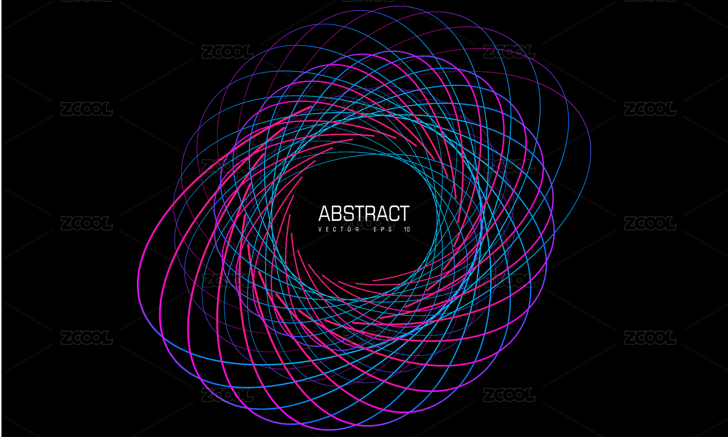 多彩多姿的曲线、抽象图形组成的三维球体、彩色的矢量线。