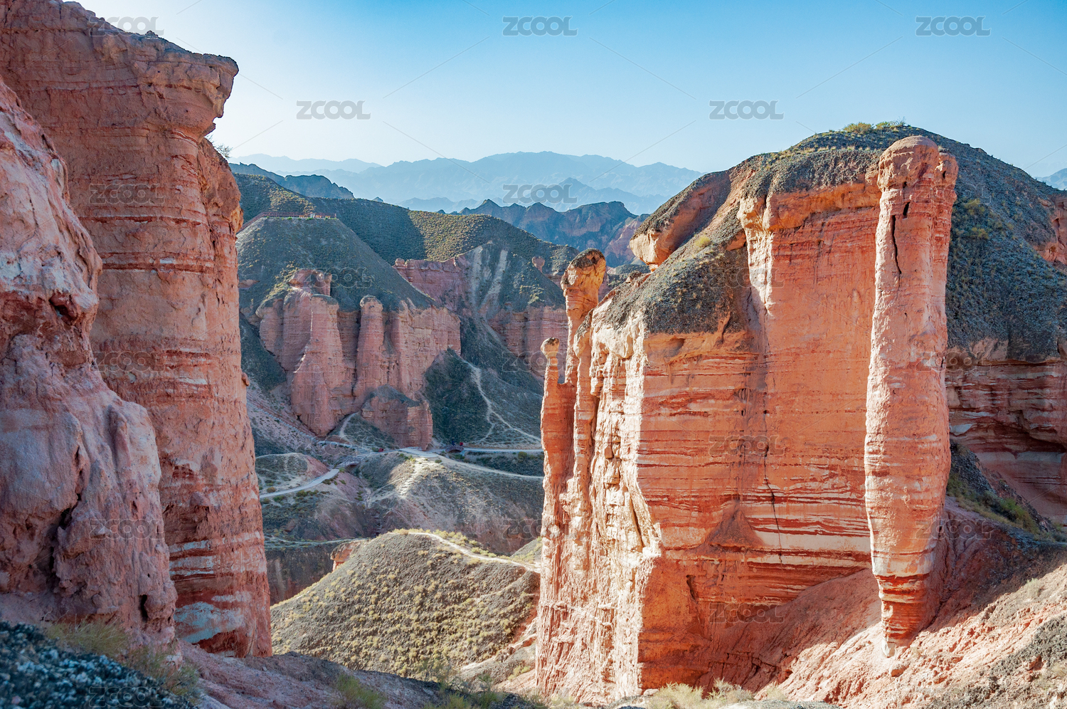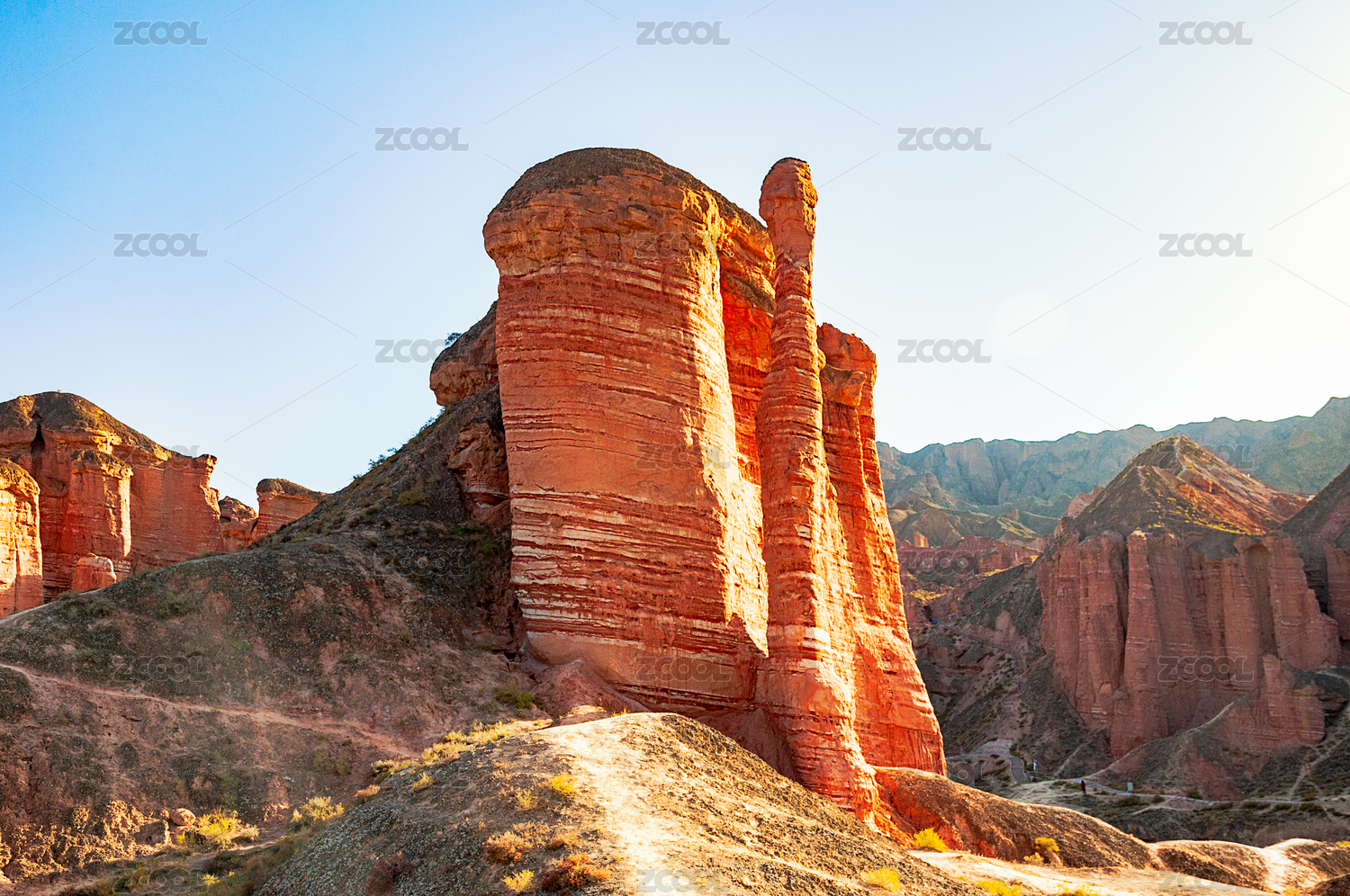 甘肃,张掖,冰沟丹霞,丹霞,肃南裕固族自治县,旅游,秋天,晴天,石柱,红色