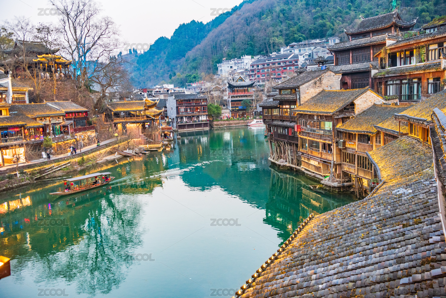 中国湖南凤凰古镇傍晚
