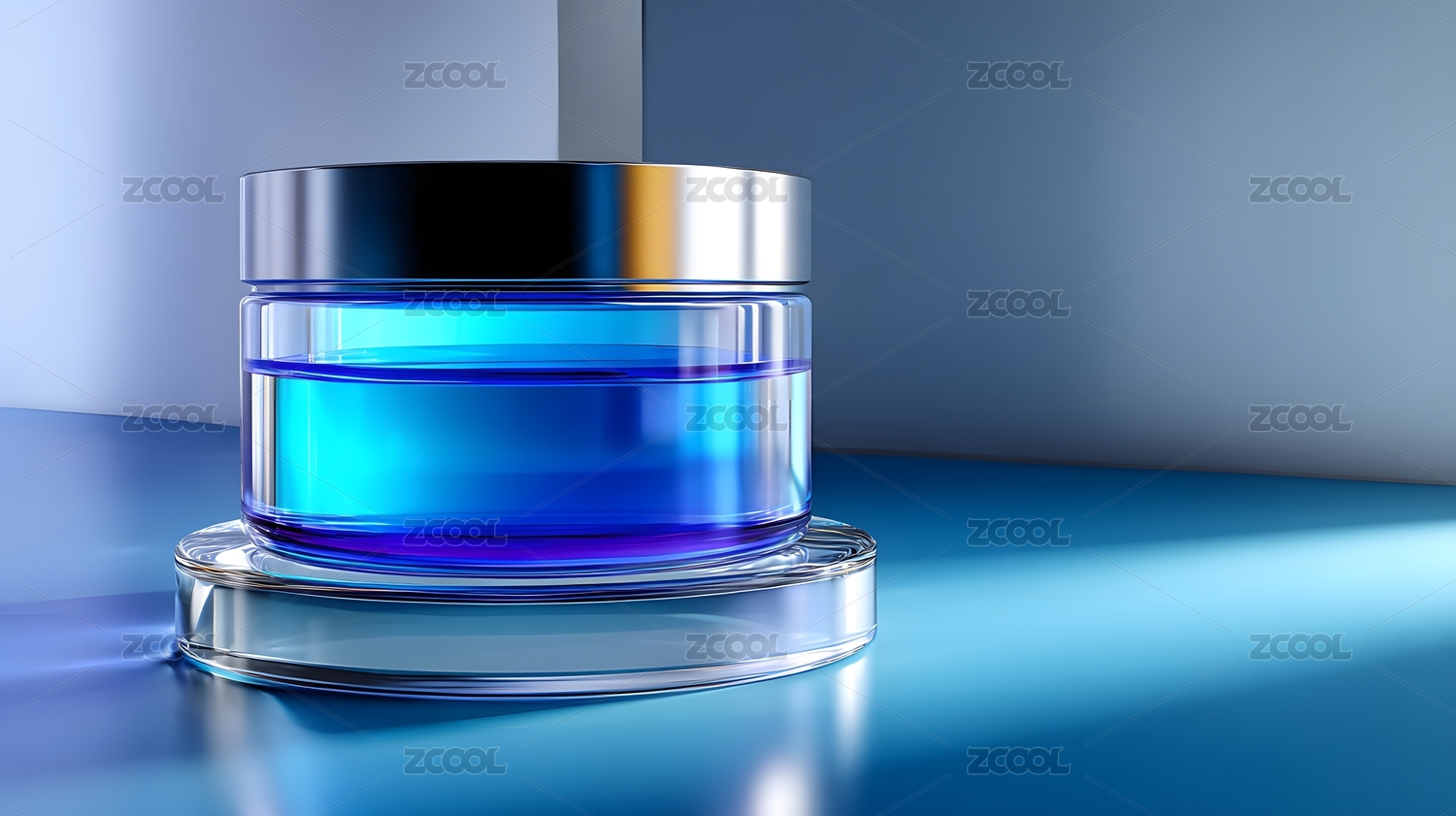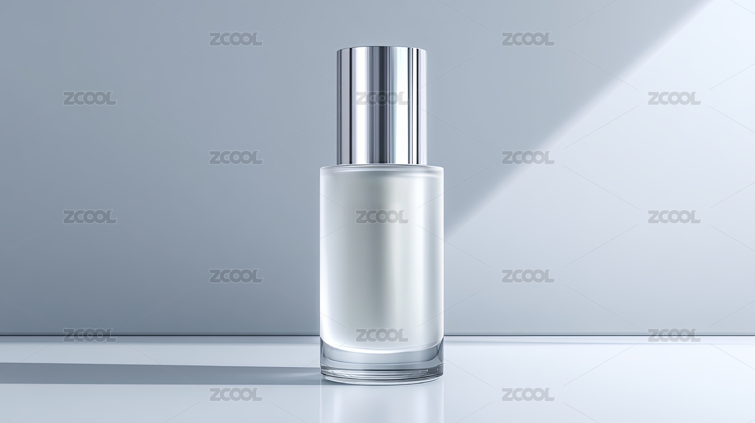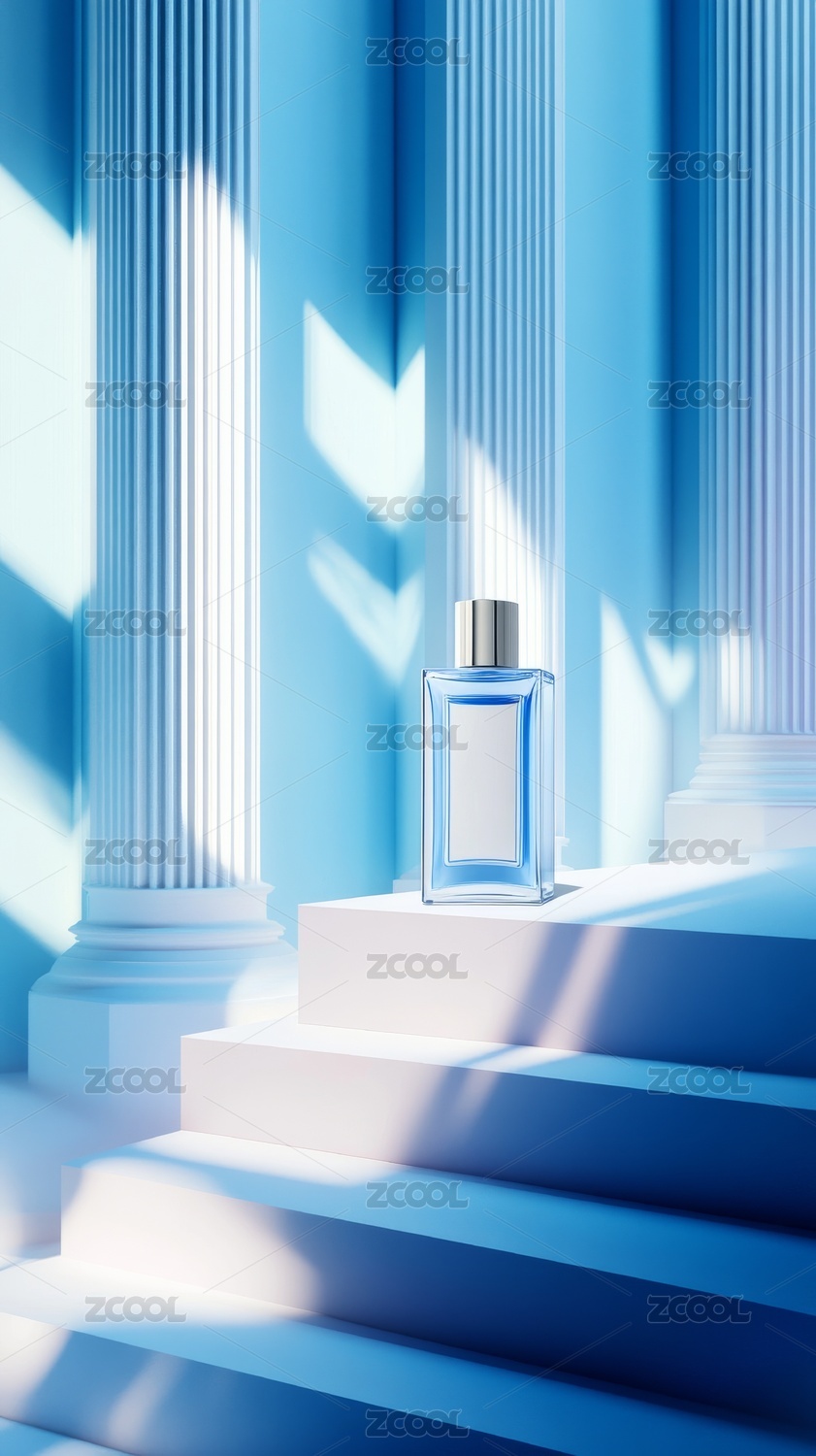 粉蓝光影下的香水瓶,呈现高端时尚感