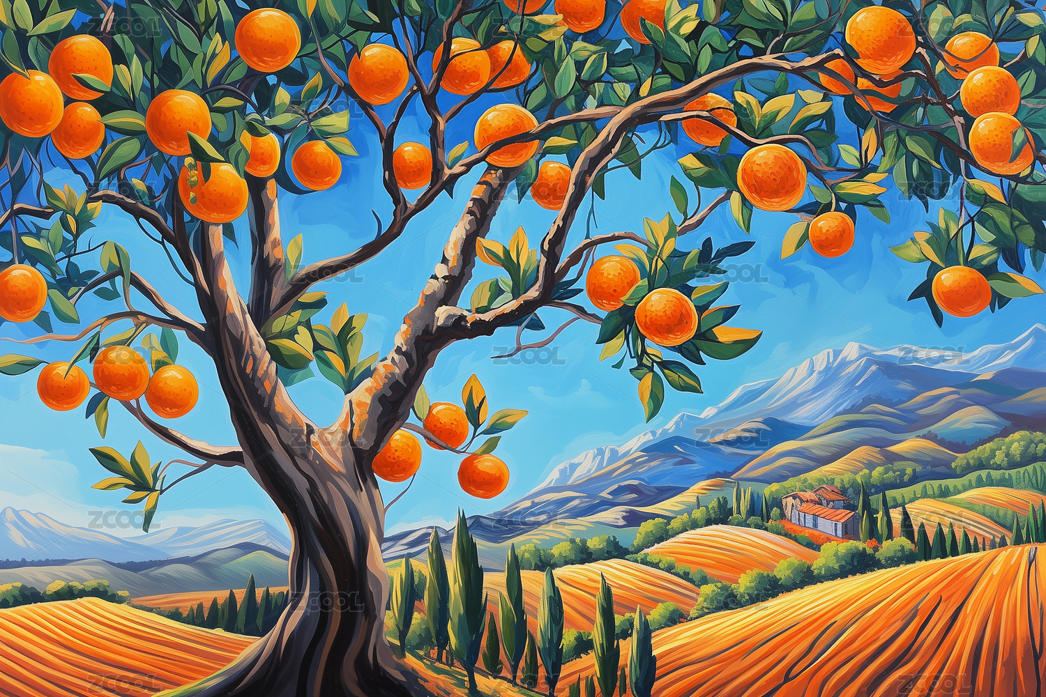 丰收的田野与橙树