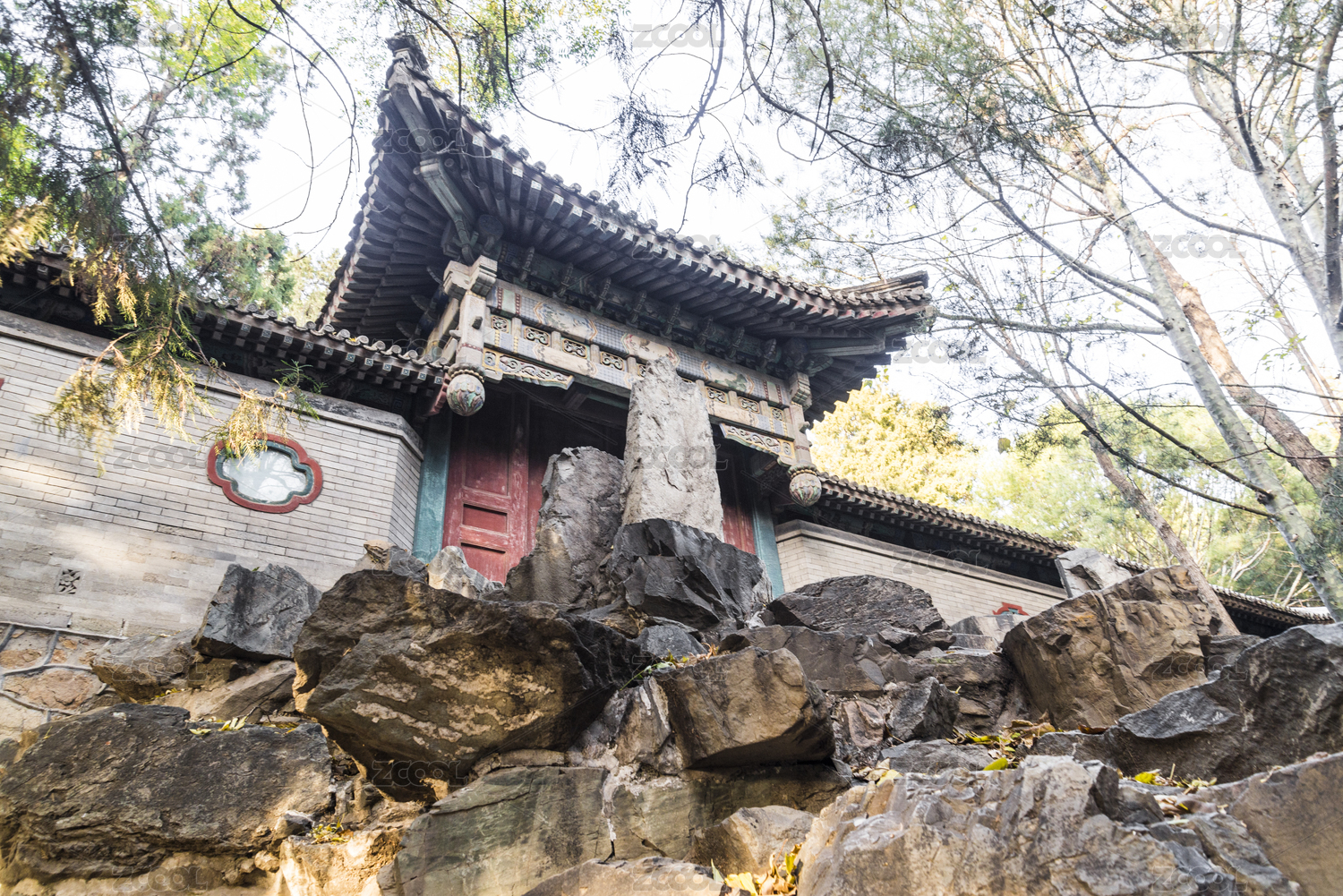 秋天北京潘家园的龙潭公园的古宫殿建筑