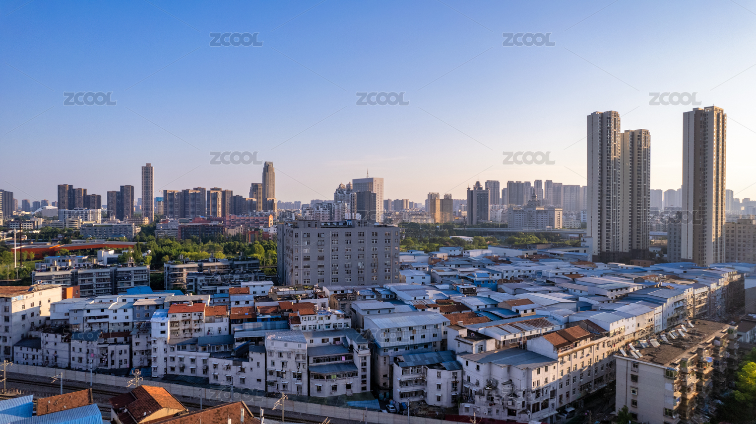 夕阳下的城市建筑