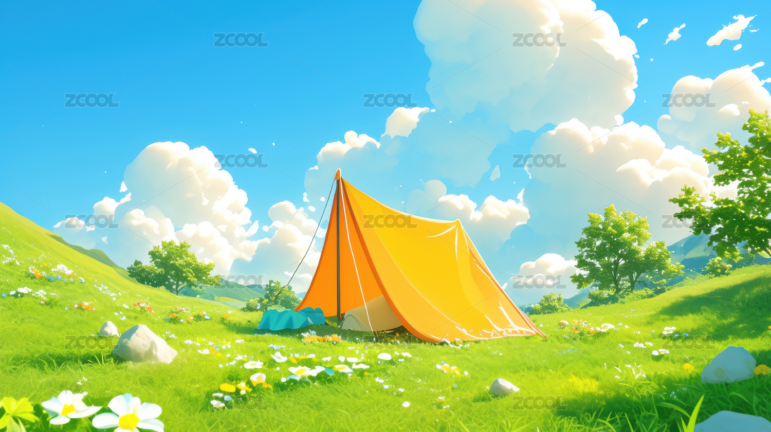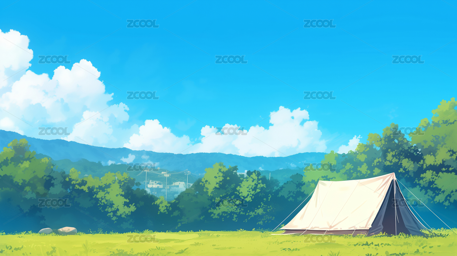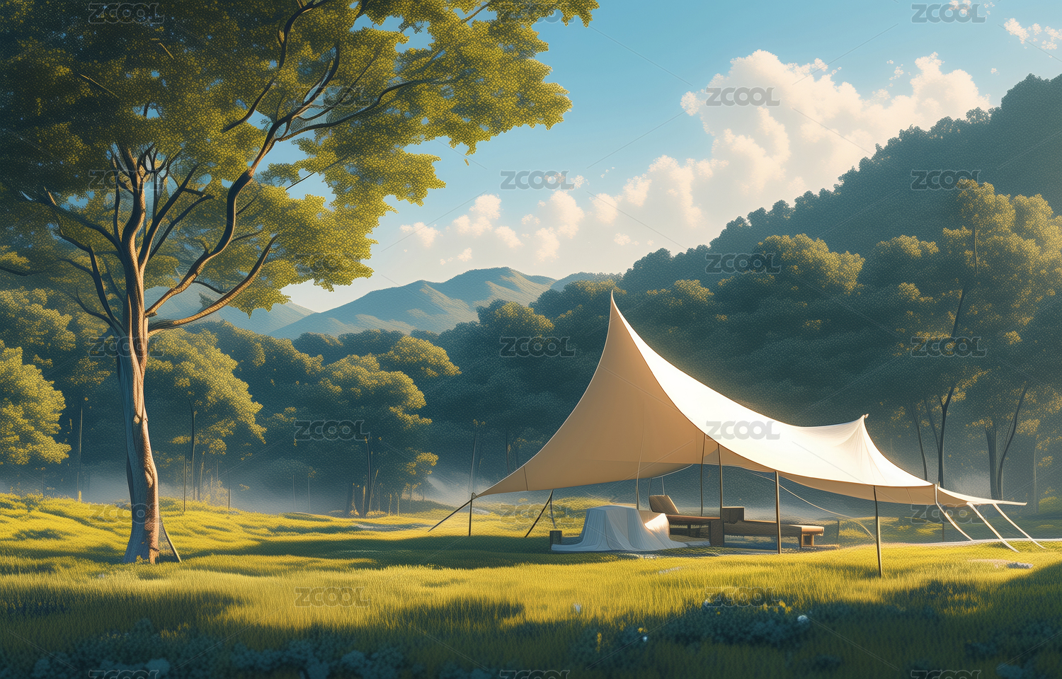露营,帐篷,天幕,绿色,夏天,户外,草坪,无人,遮阳,度假