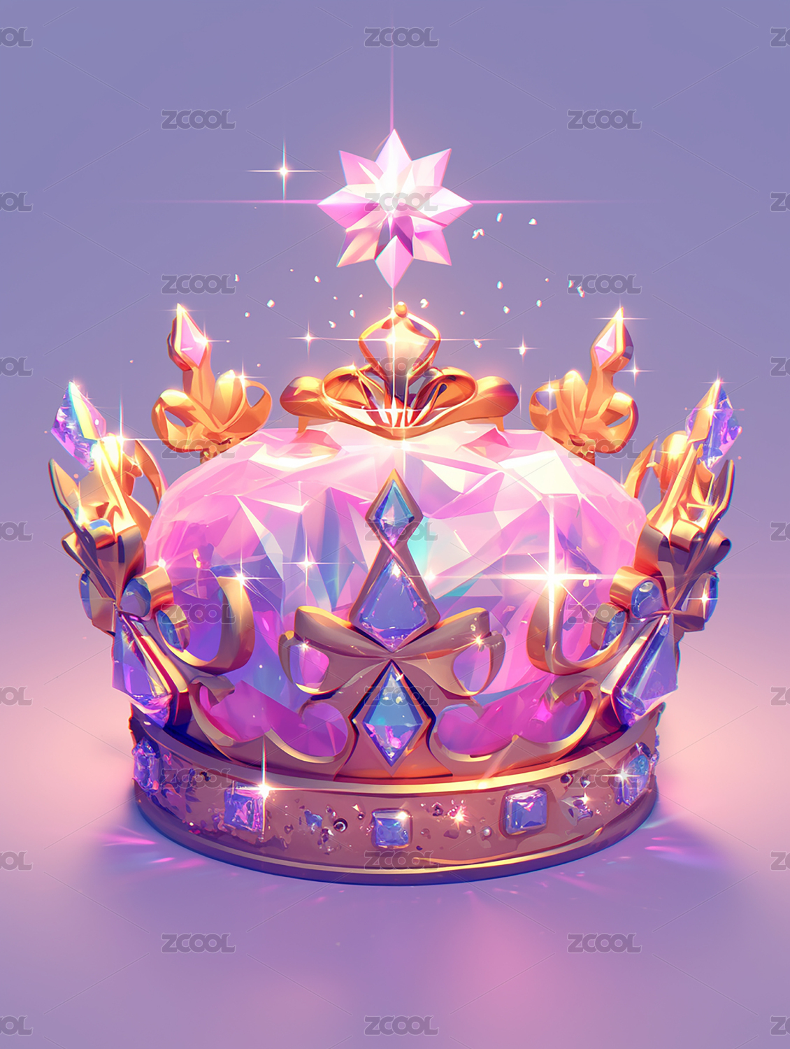 水晶宝石王冠全息色彩3D插画