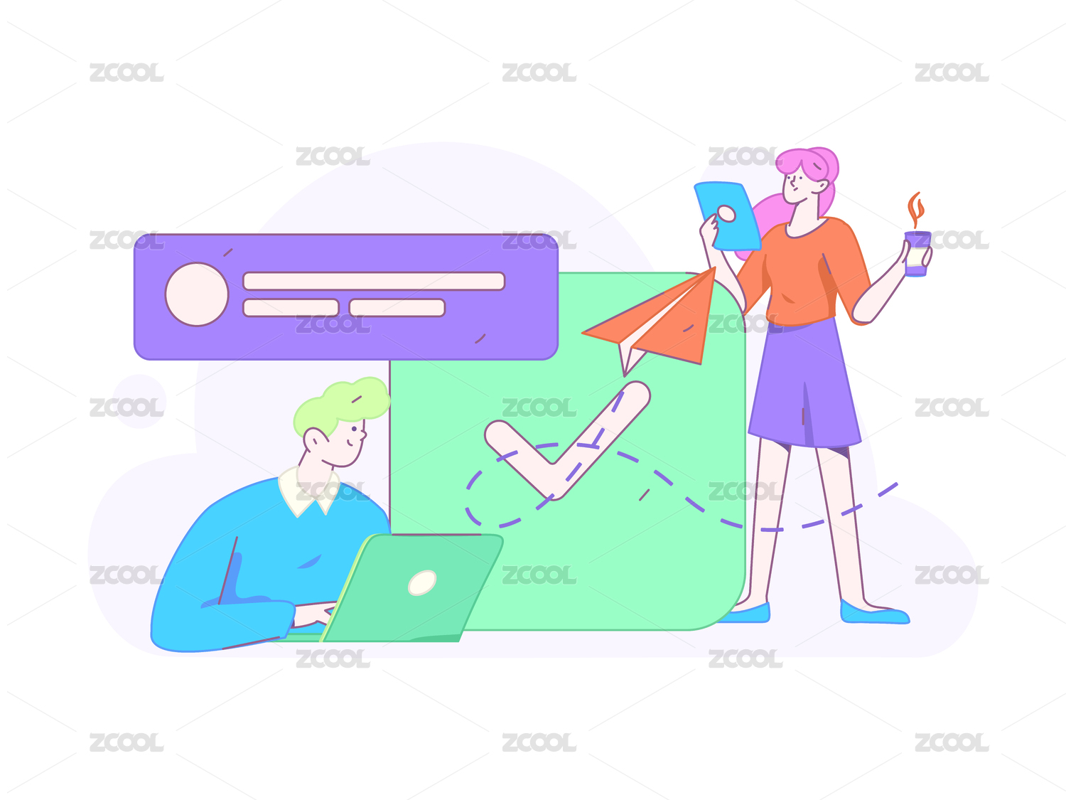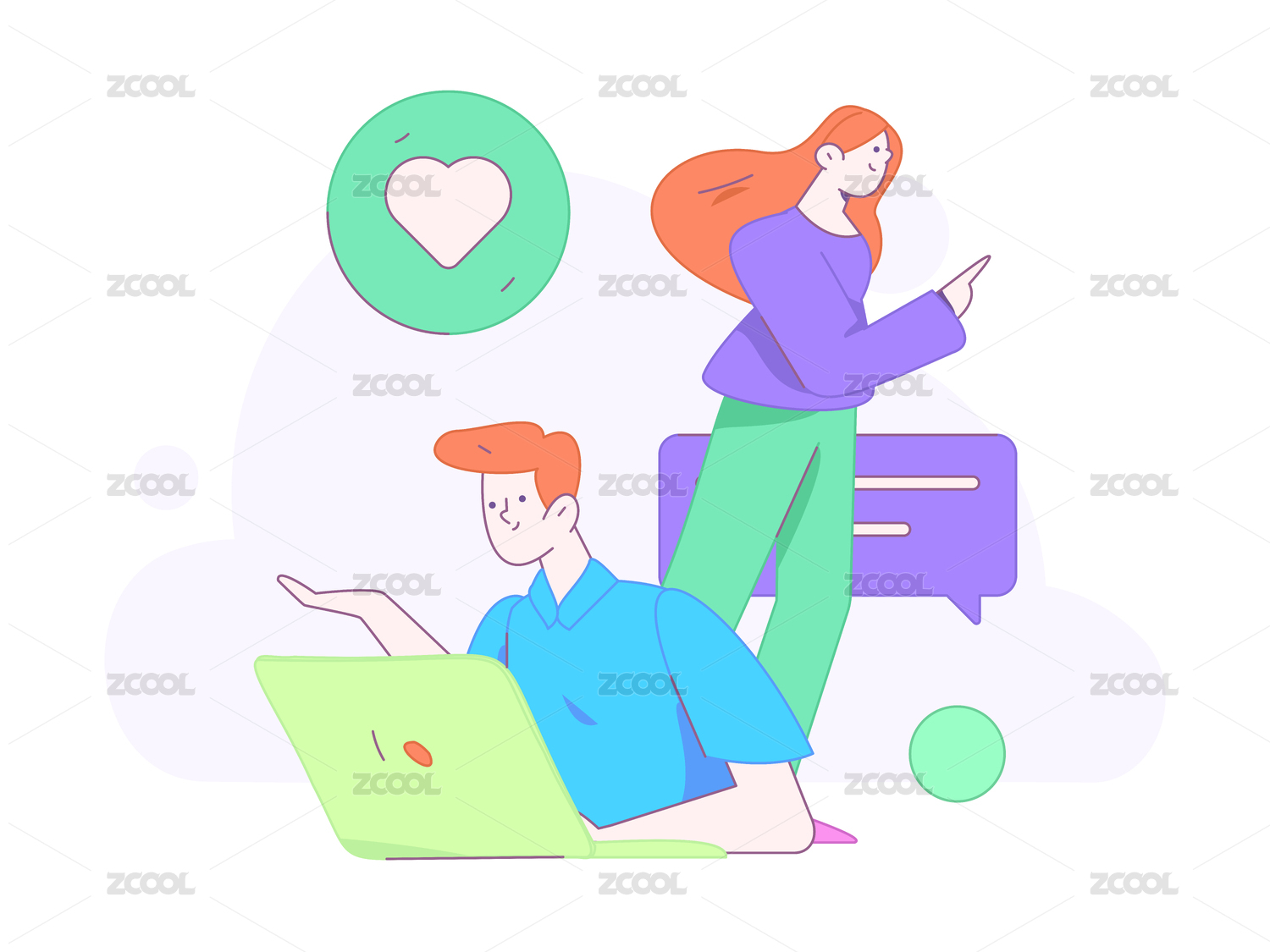 虚拟的人物社交沟通概念商业扁平矢量手绘插