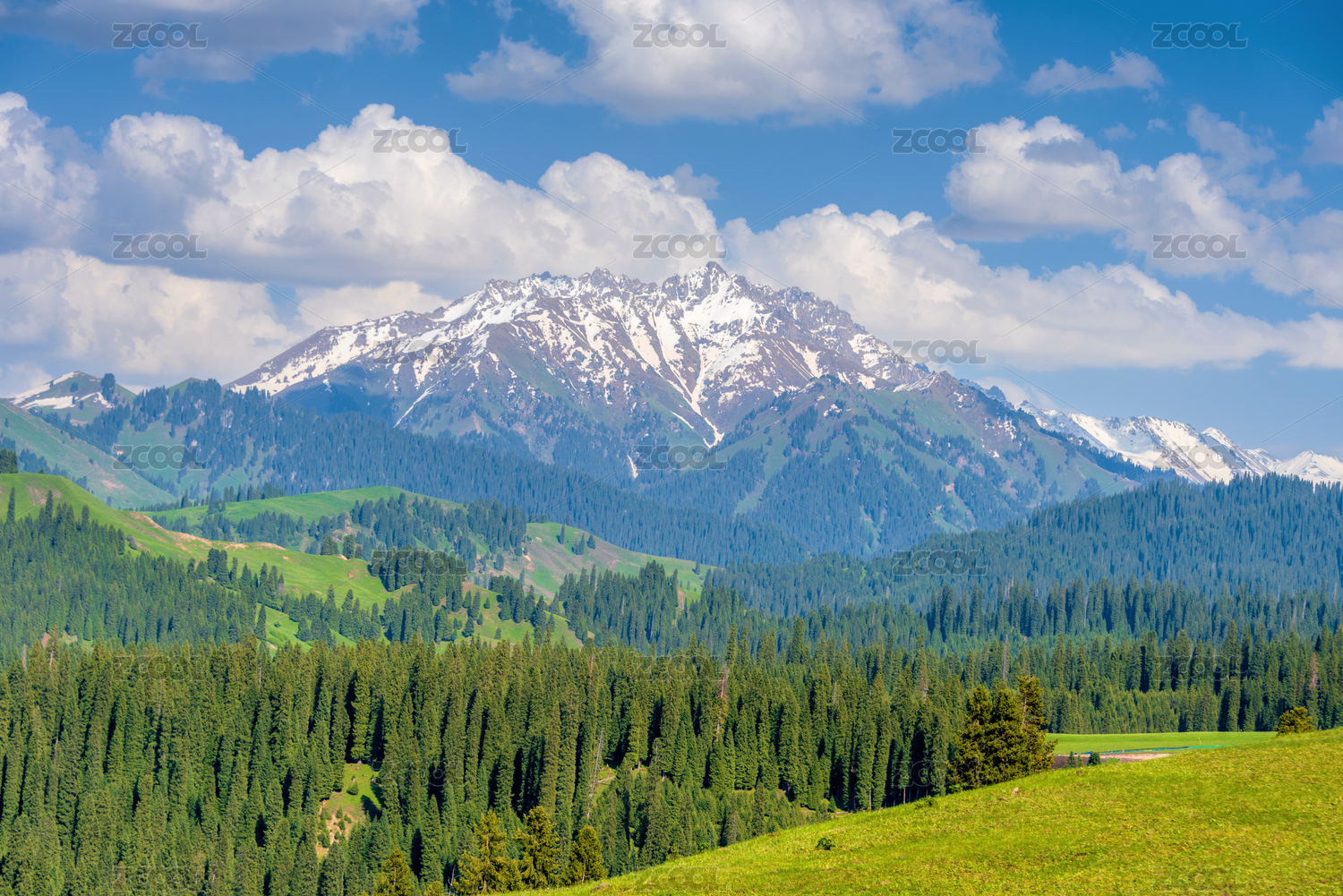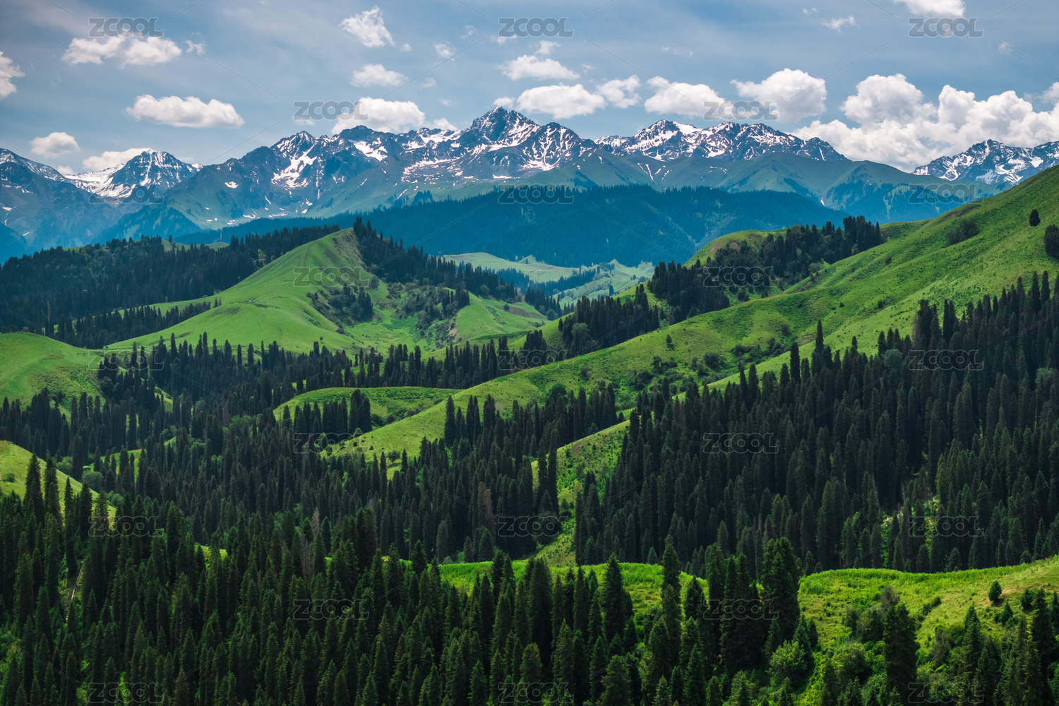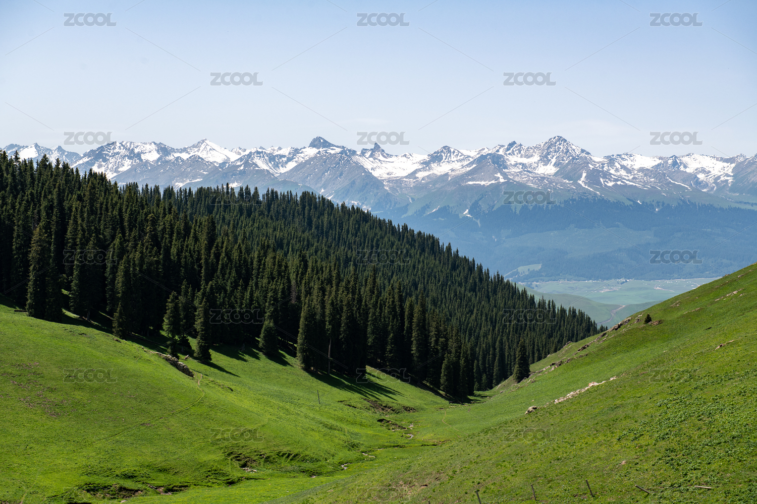 中国新疆伊犁库尔德宁高山草甸森林自然风光