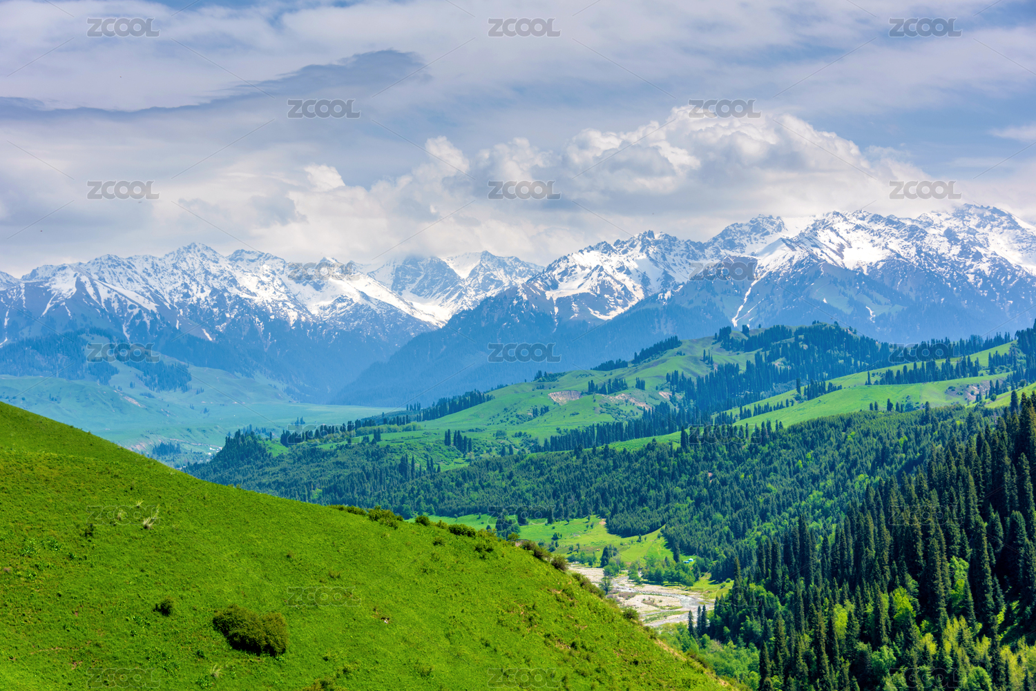 中国新疆伊犁库尔德宁 齐梦德观景台雪山群