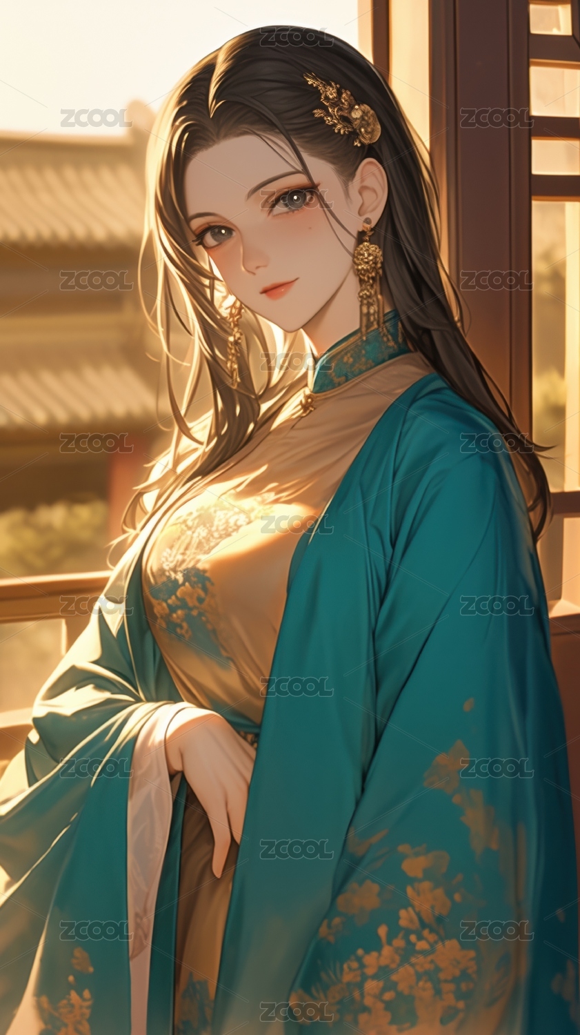 AIGCFG,中国风,中式,国潮风,美女,插画,汉服,卡通