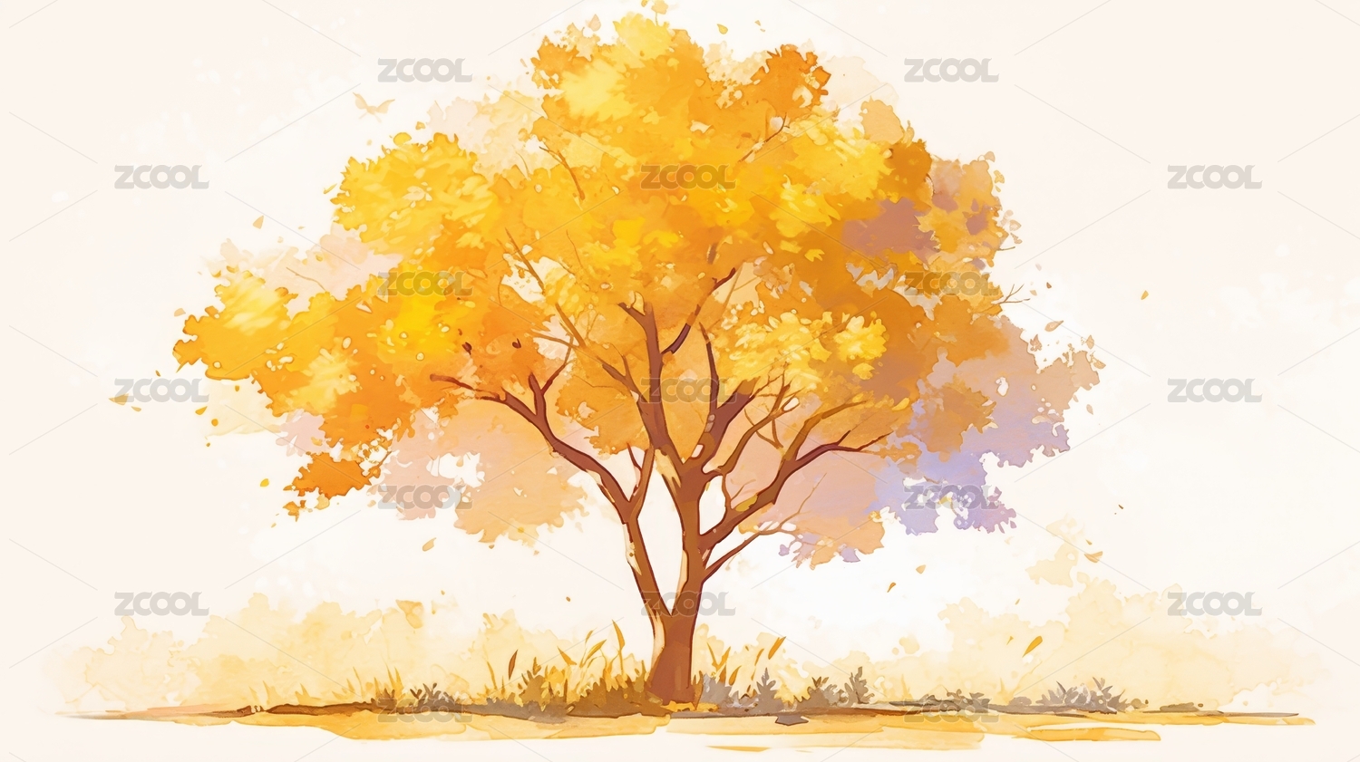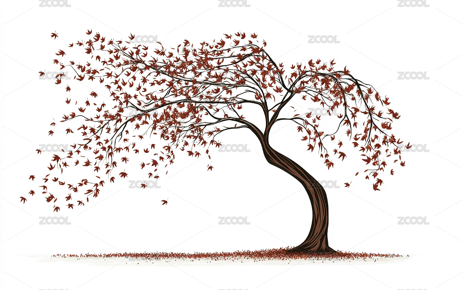 AIGCFG,中式,中国风,国潮风,插画,卡通,秋天,枫树,枫叶,植物