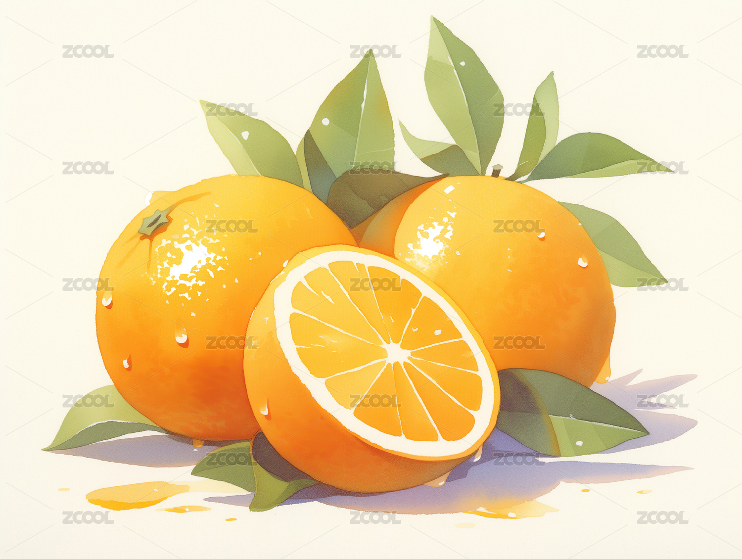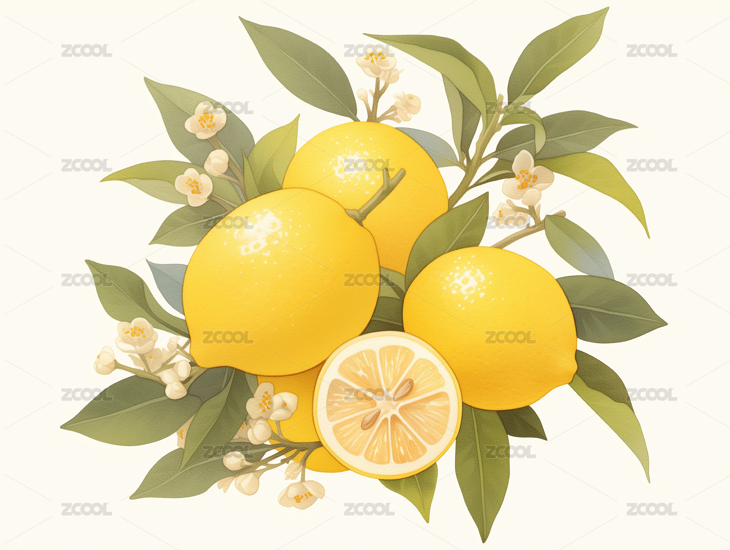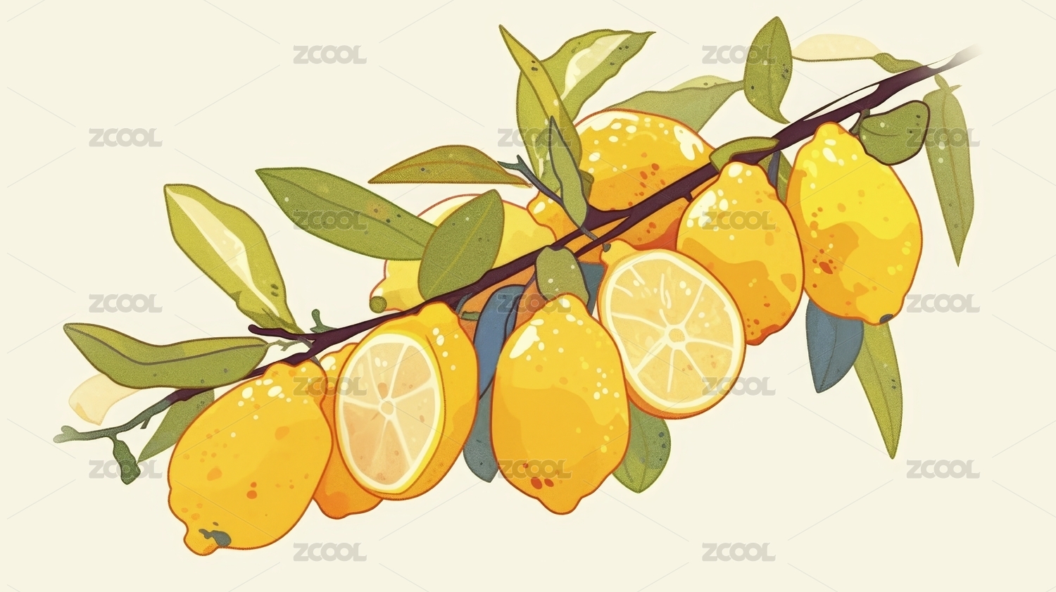 AIGCFG,中式,中国风,国潮风,插画,卡通,水果,柠檬