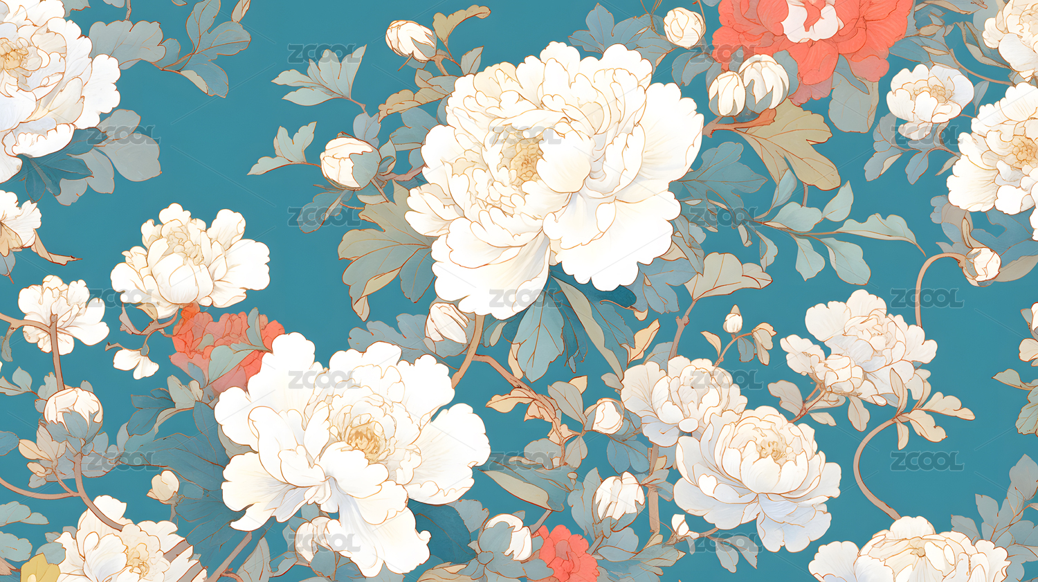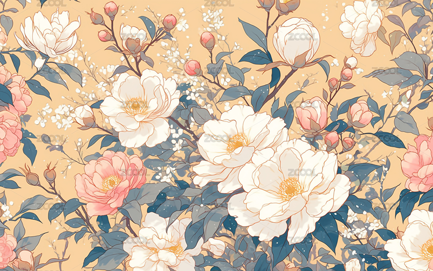 AIGCFG01,插画,浮世绘,鲜花,花朵,花,植物,芍药,牡丹