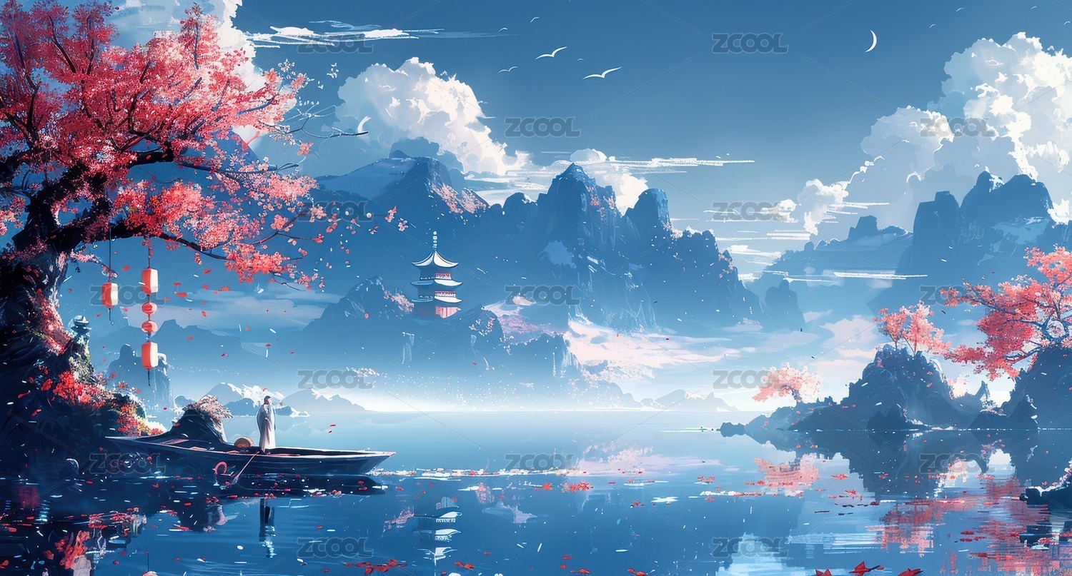 中国风,水墨画,古风,国风,山,高山,山水,风景,春天,春分