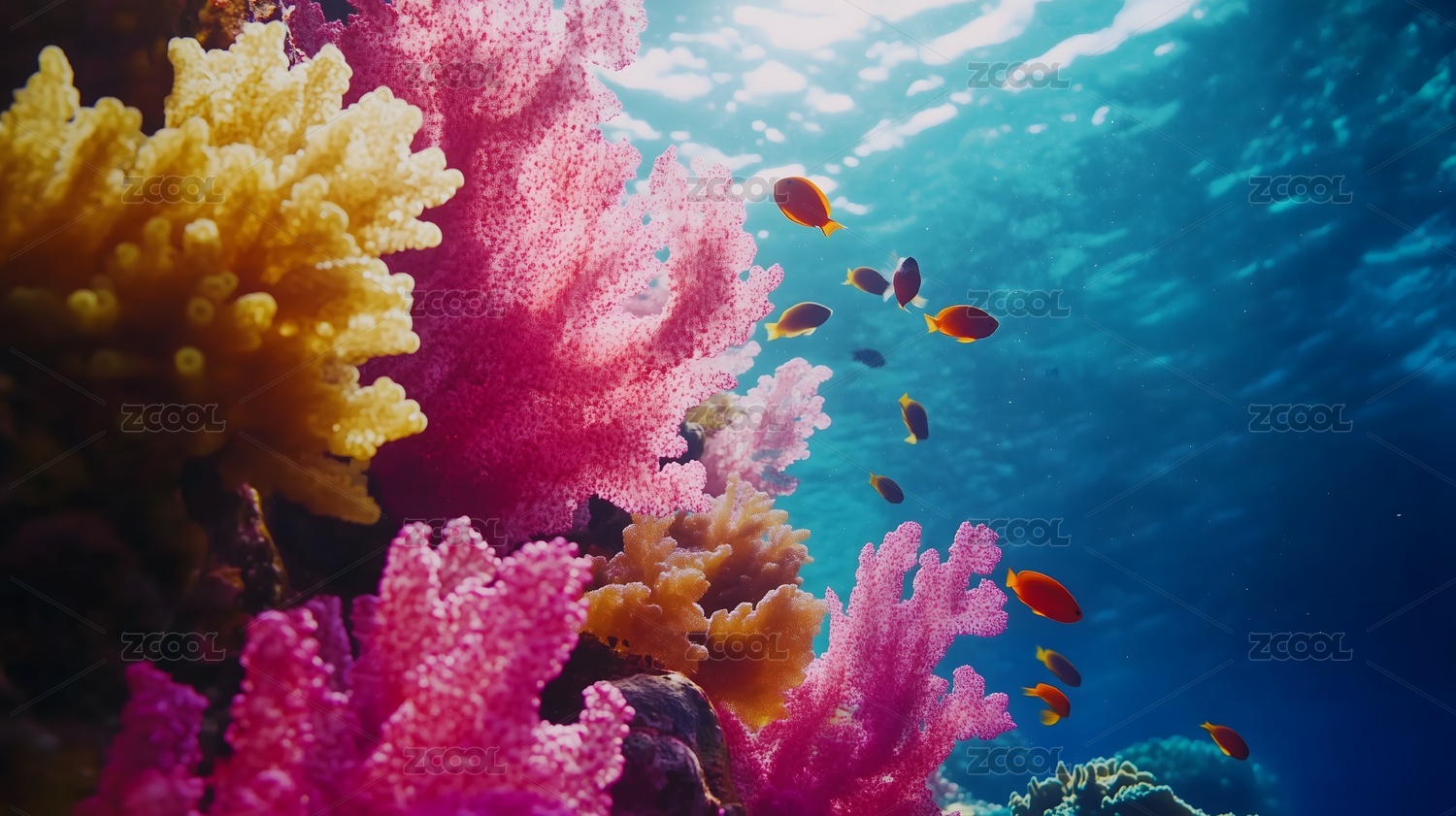 海底世界珊瑚礁鱼群海洋梦幻唯美创意设计艺