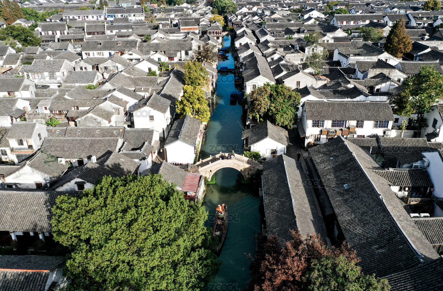 浙江嘉兴桐乡乌镇东栅江南水乡航拍