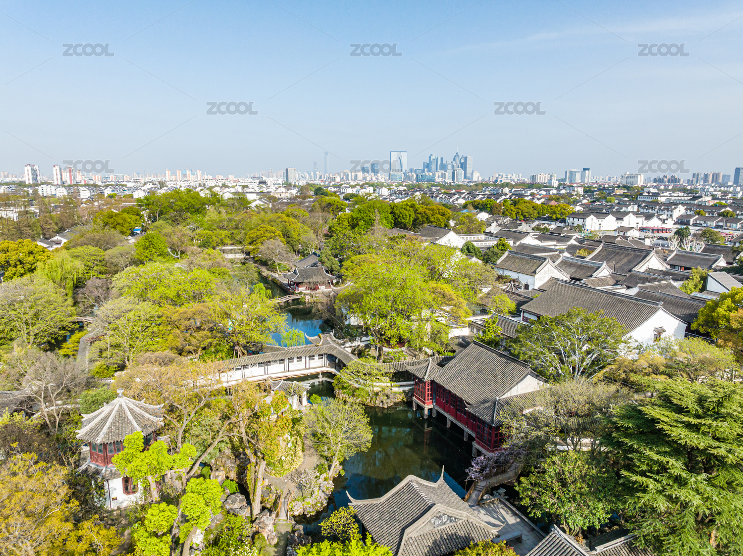 中国,江苏,苏州,拙政园,园林,户外,建筑,旅行,白昼,航拍视角