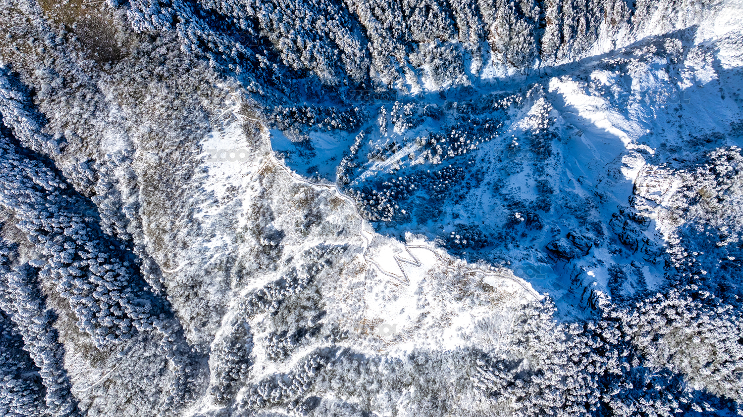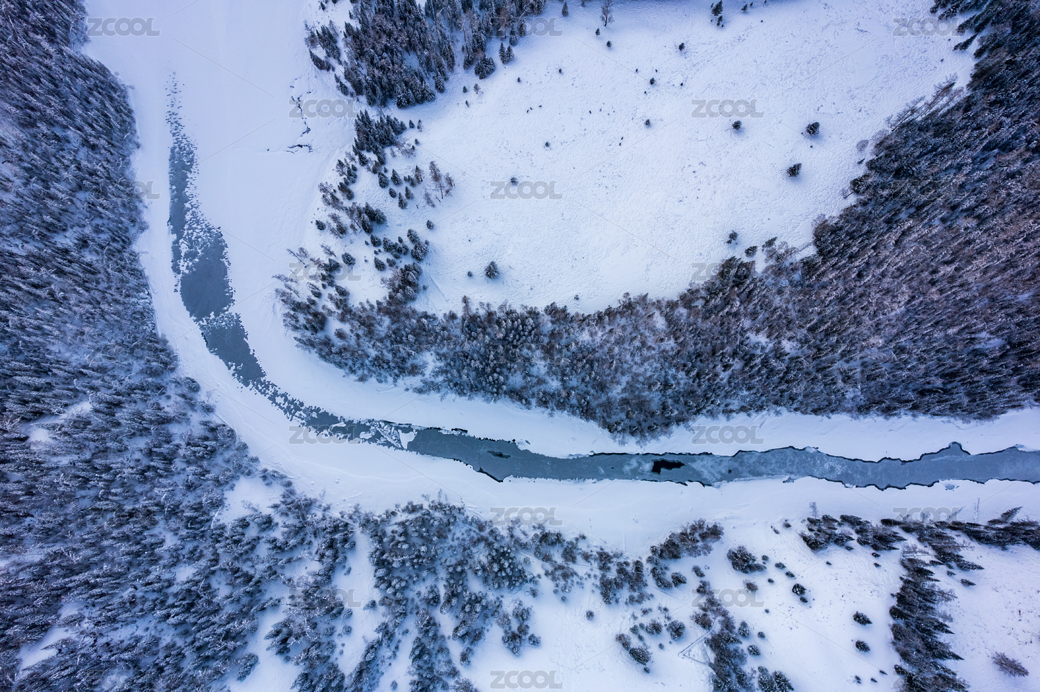 中国新疆阿勒泰地区喀纳斯雪景航拍
