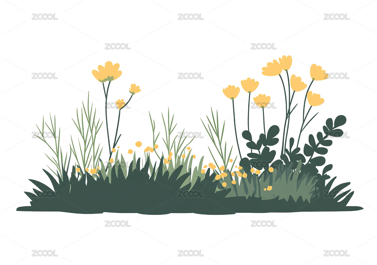 花序,自然,植物群,植物,清新,春天,夏天,草丛,插画,绿色