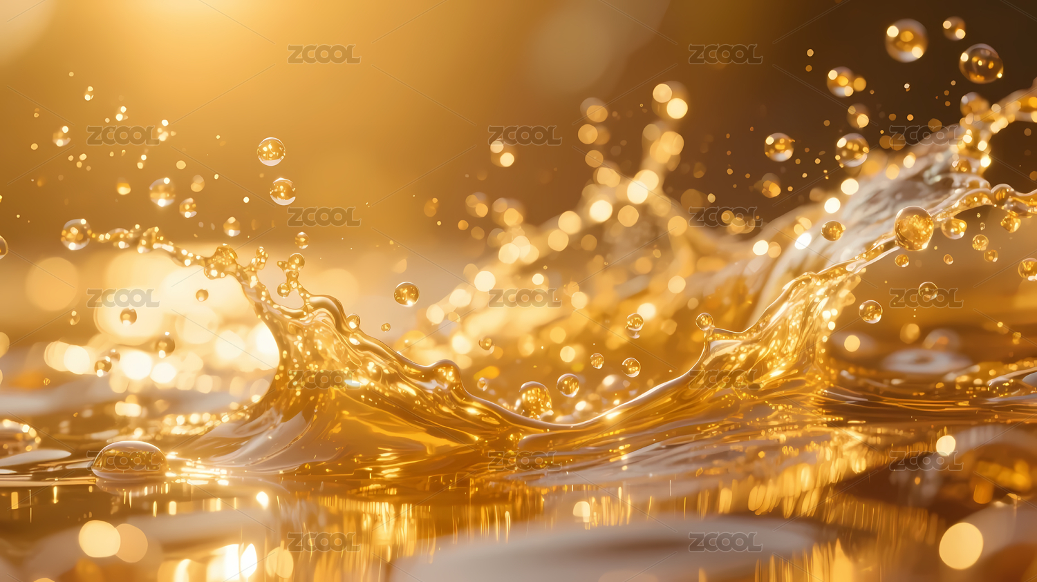 模糊渐变背景下液体中的抽象油滴,金色油滴