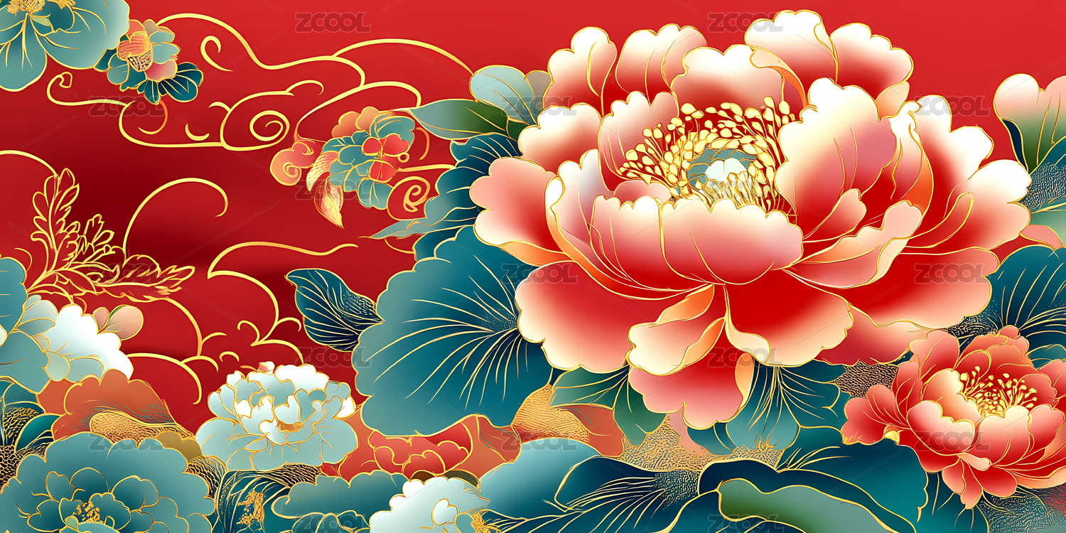 国风富贵牡丹图案