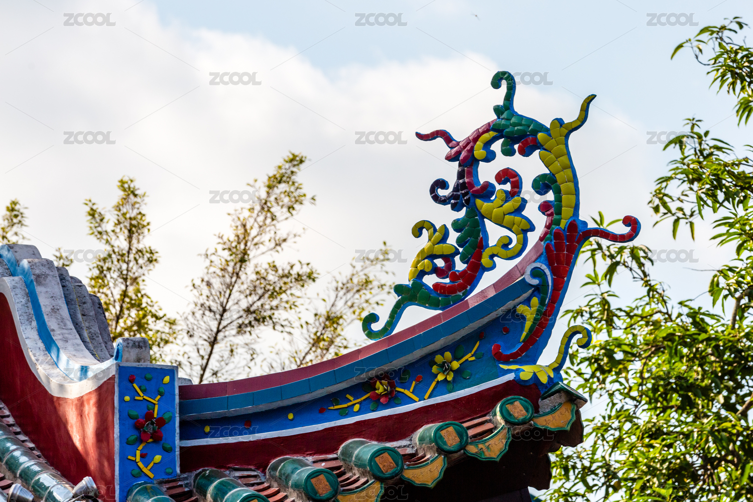 中国福建泉州市洛伽寺房顶上的神兽装饰