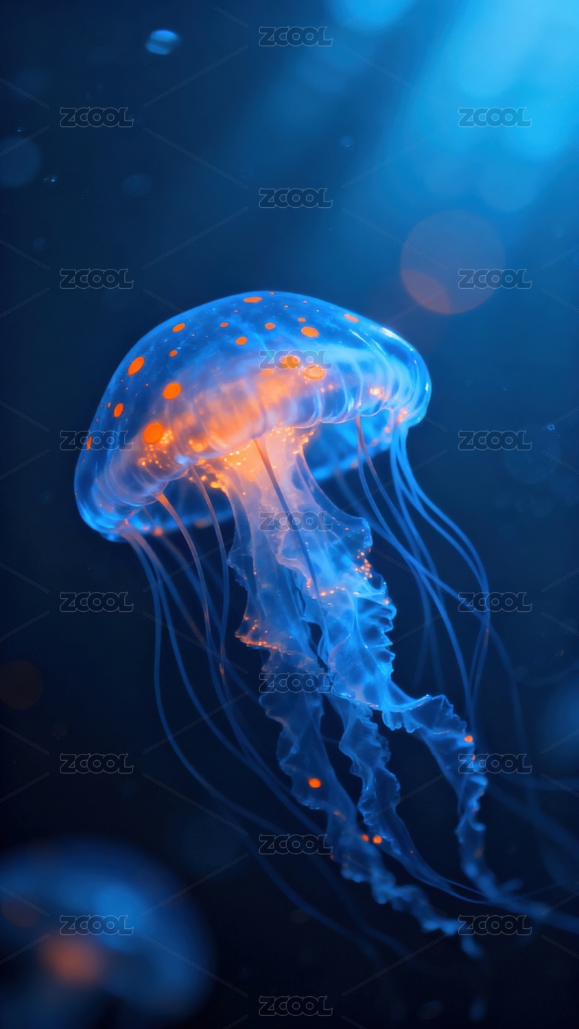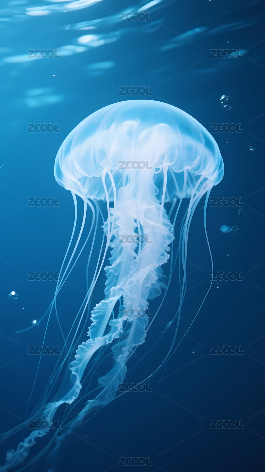 蓝色梦幻水母特写海洋生物海底世界生物背景
