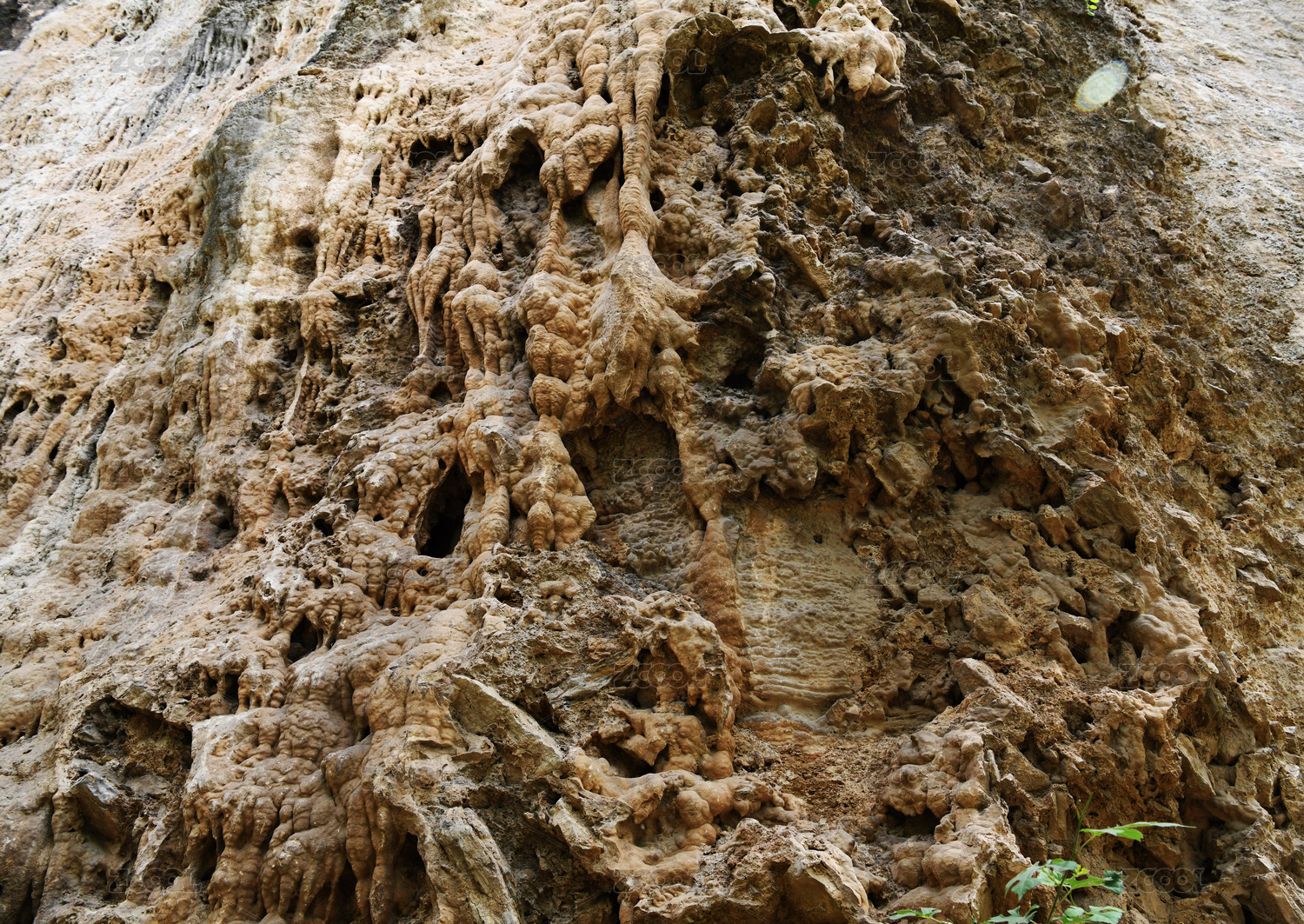 山东枣庄熊耳山大裂谷景区山崖上的钟乳石