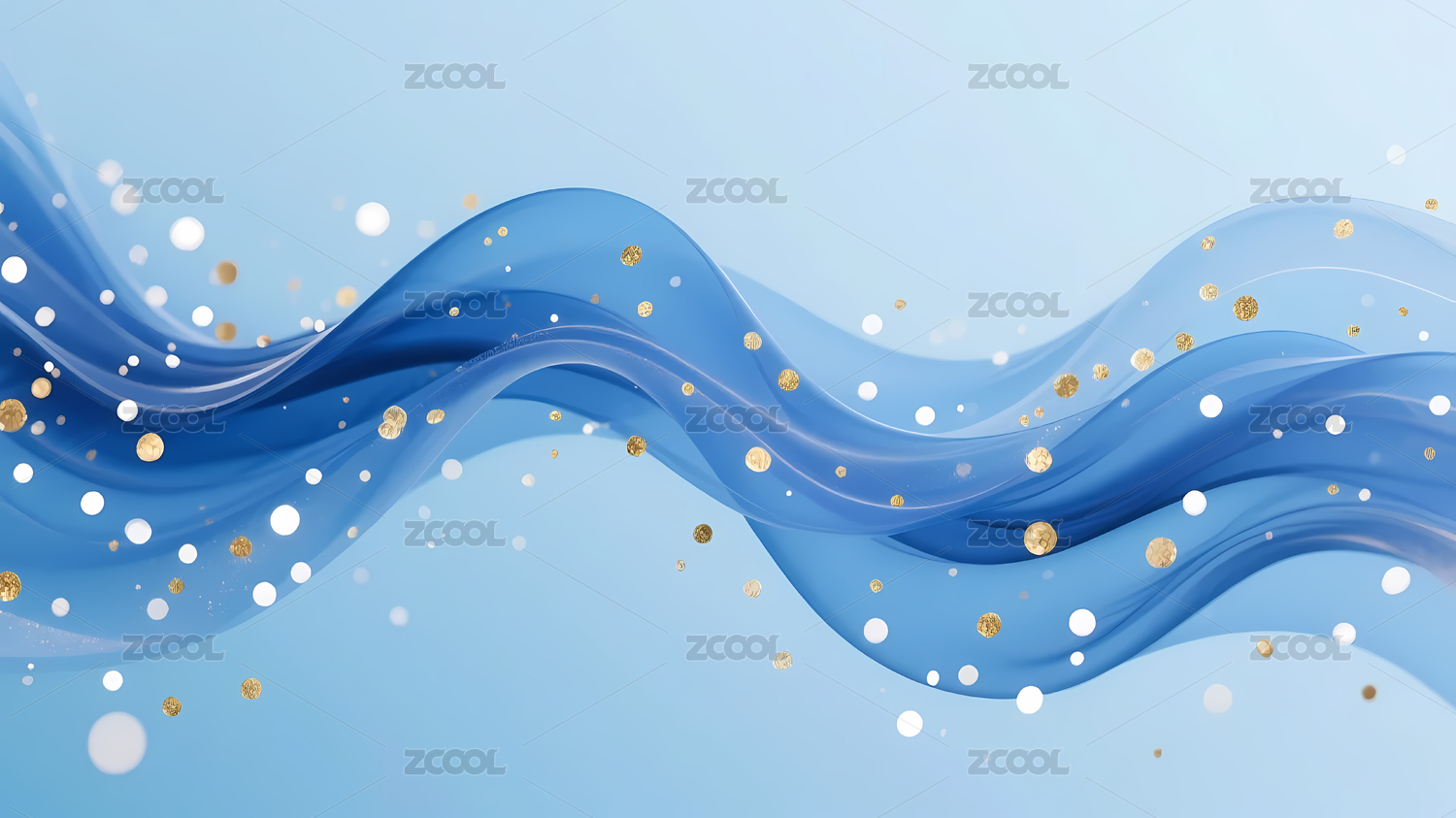 蓝色波浪与金色点缀