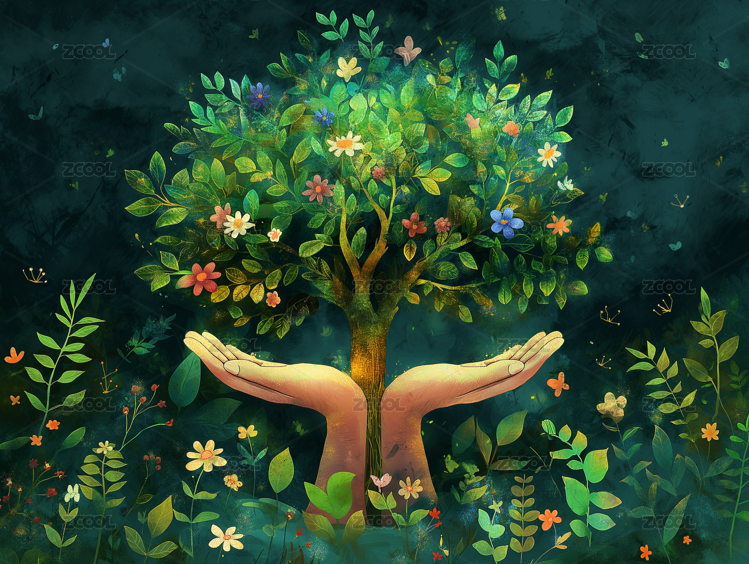 艺术, 设计, 自然, 插画, 生态, 植物, 保护环境, 手, 水彩, 叶子