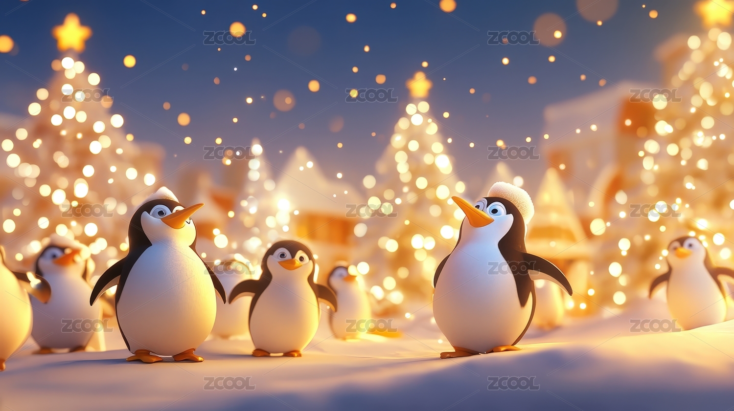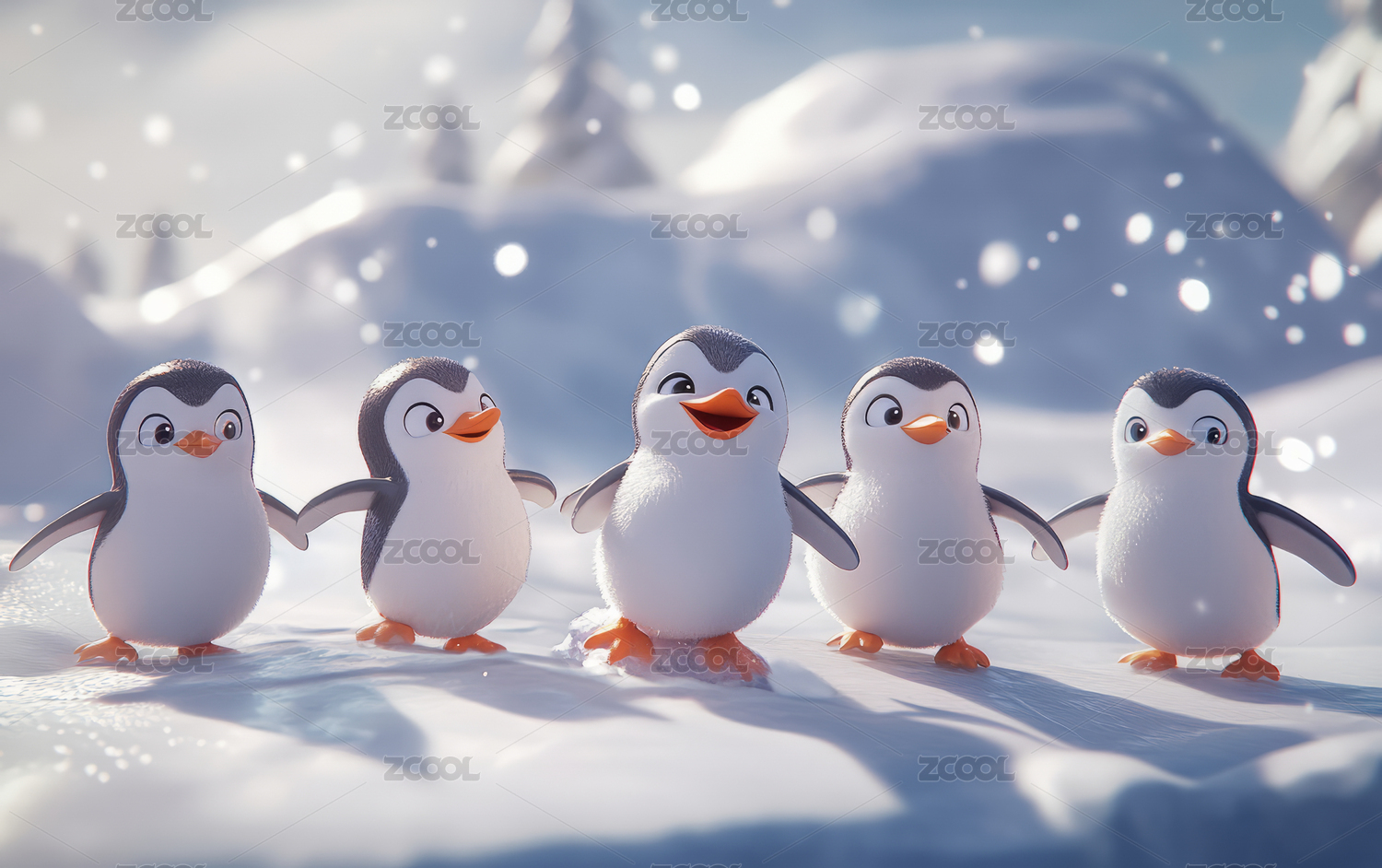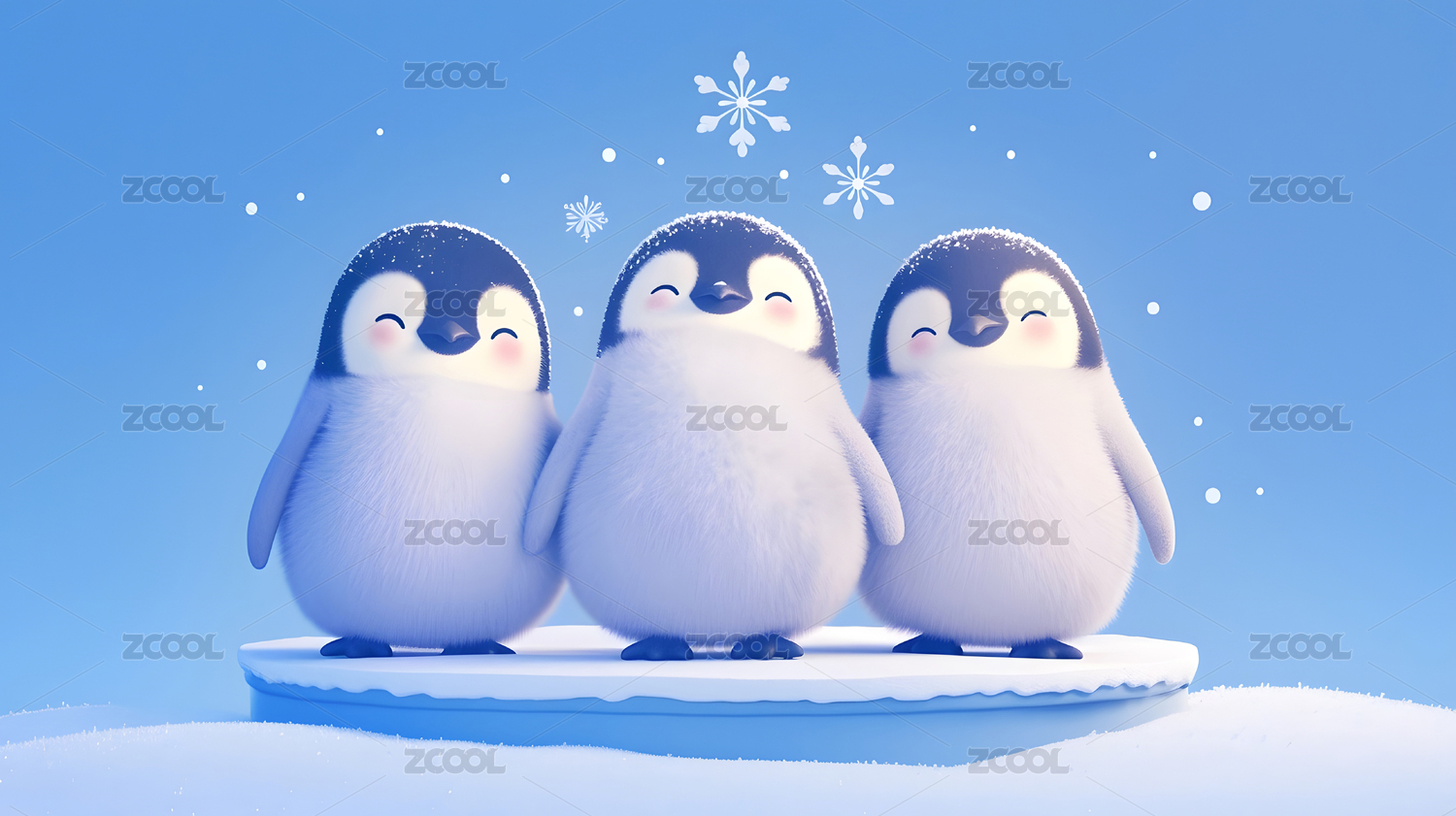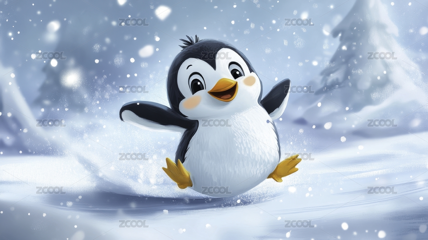 白色,背景,圆润,企鹅,冬天,雪,森林,可爱,卡通,动画