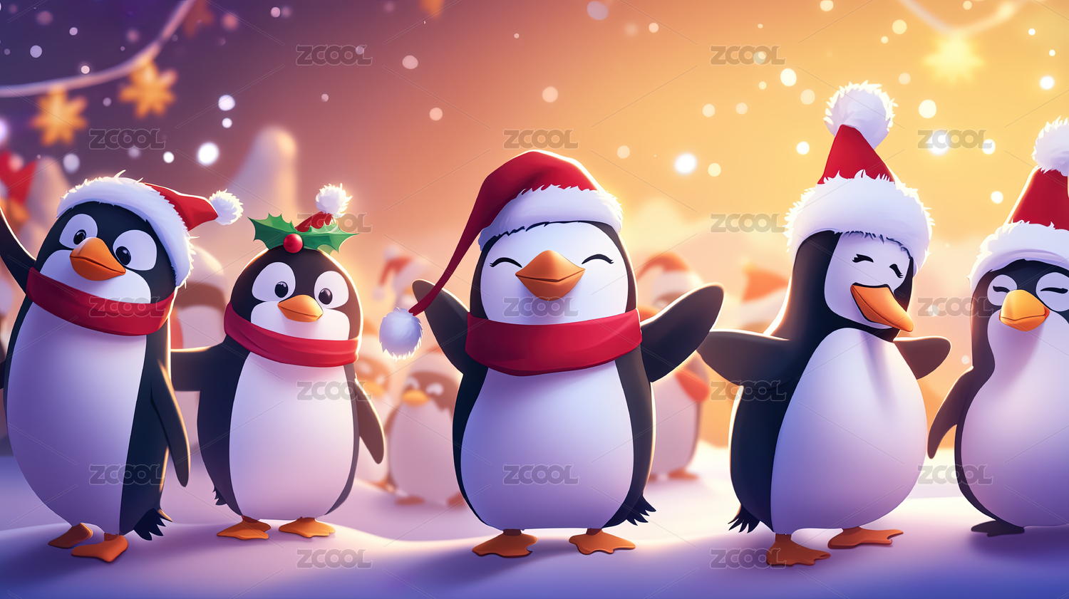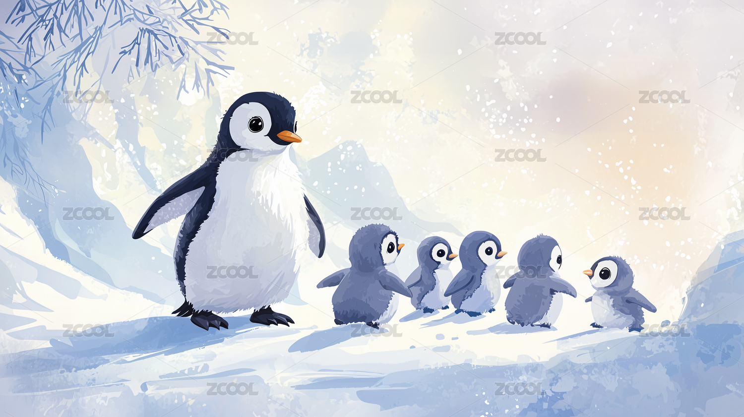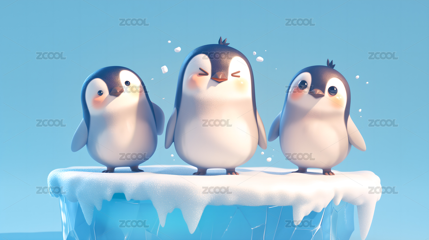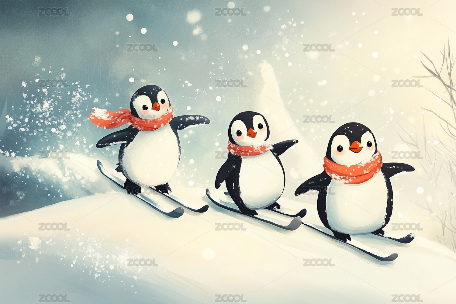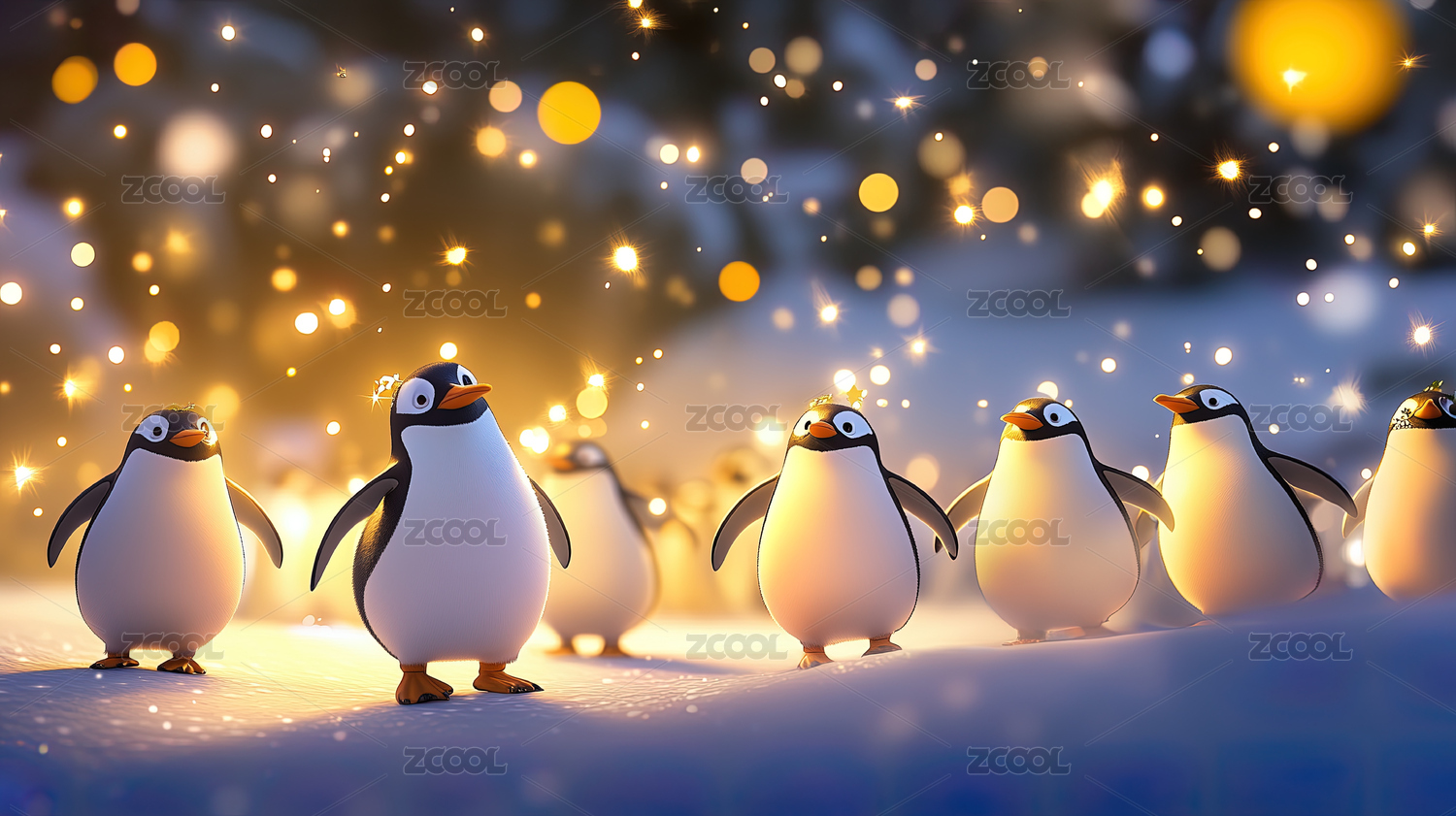 白色,背景,圆润,企鹅,冬天,雪,森林,可爱,卡通,动画