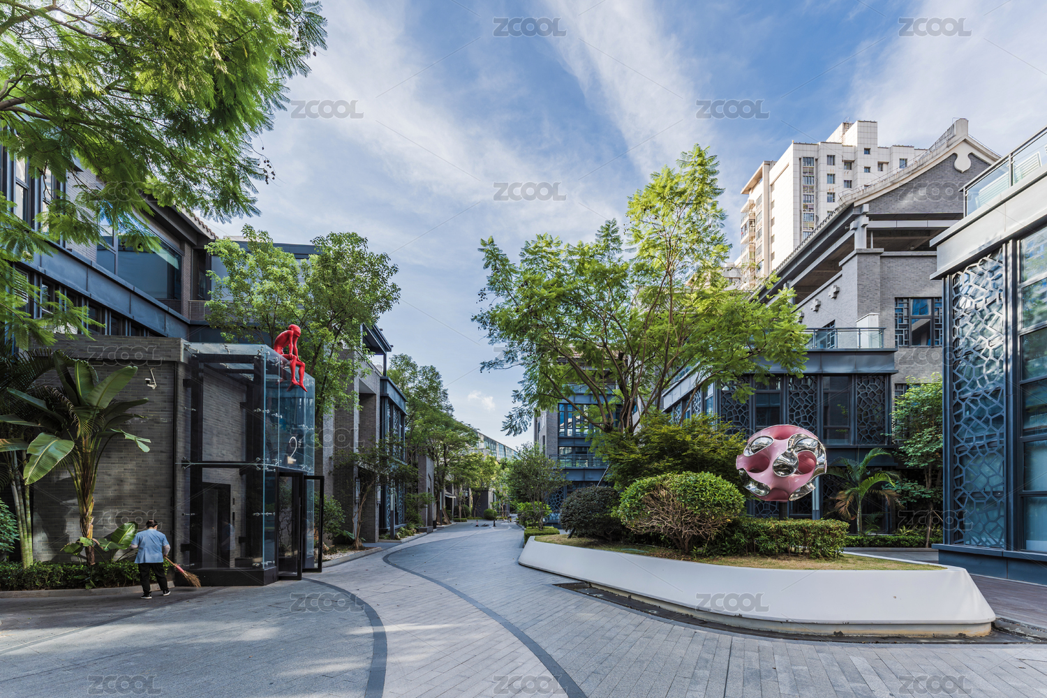 重庆,商业街,公园,户外咖啡馆,铺路石,街道,建筑,别墅,绿化,草地