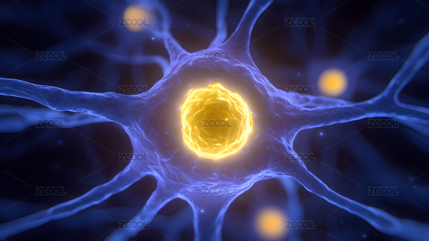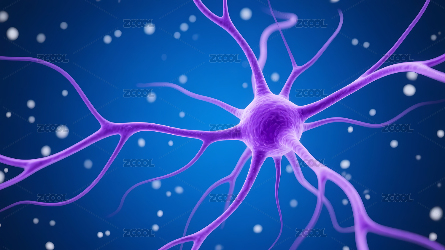 神经元细胞神经系统特写,抽象的蓝色闪光神