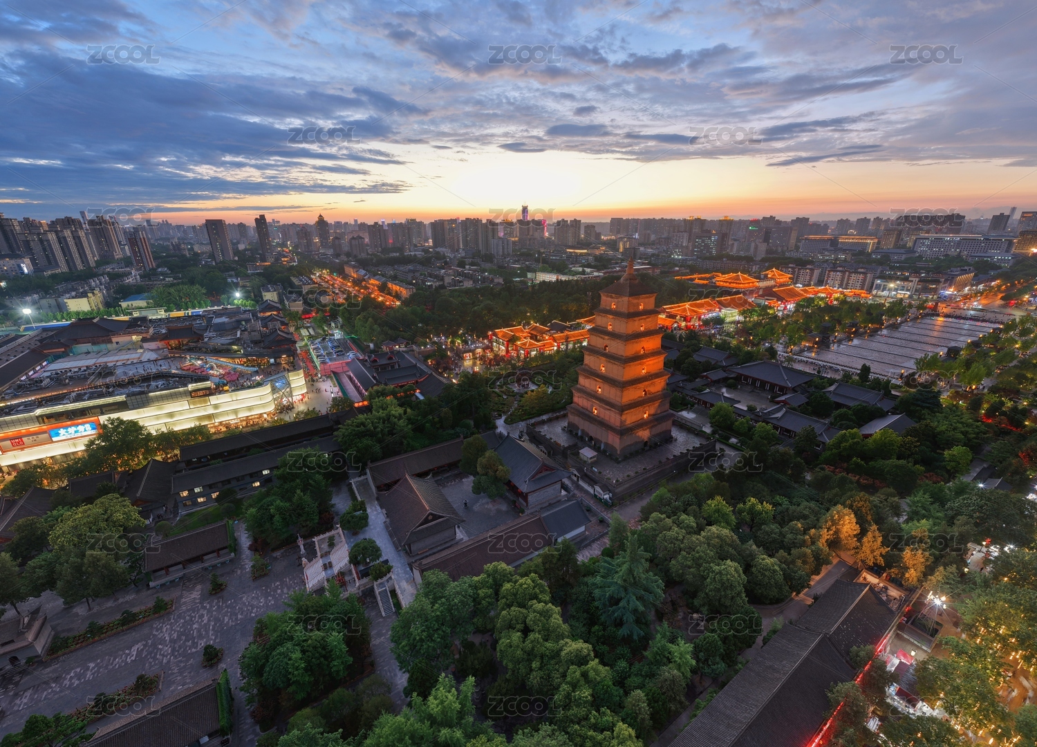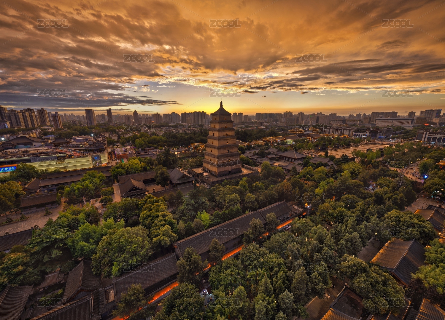 中国,陕西省,西安,小雁塔,西安博物院,博物馆,秋天,色彩,金黄色,天空